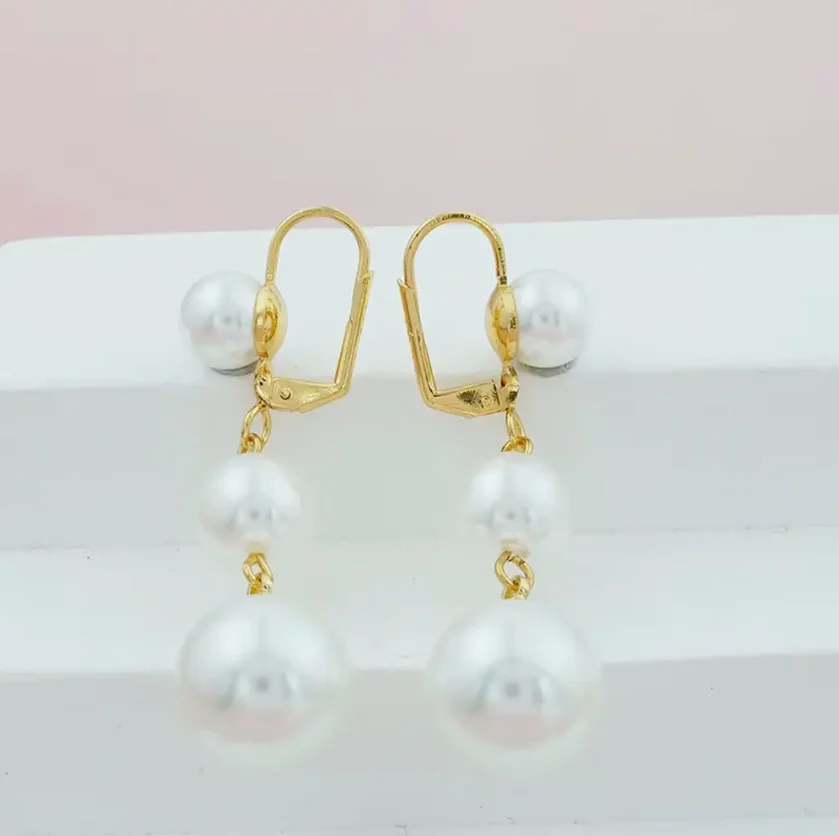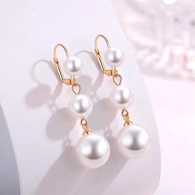 Stylish and Elegant 14k Gold-plated White Pearl Earrings for Ladies Party Wedding Party Accessories