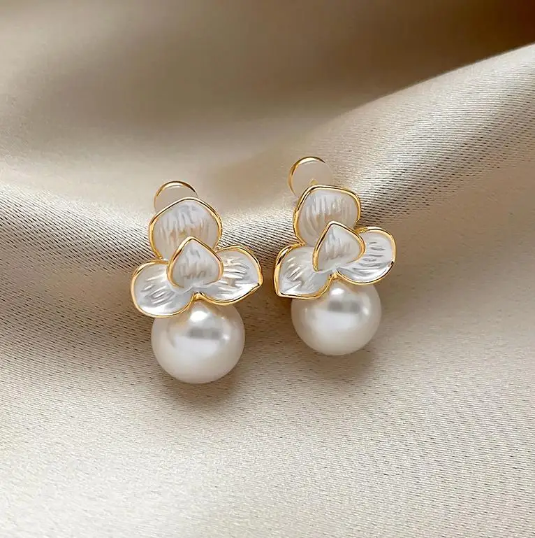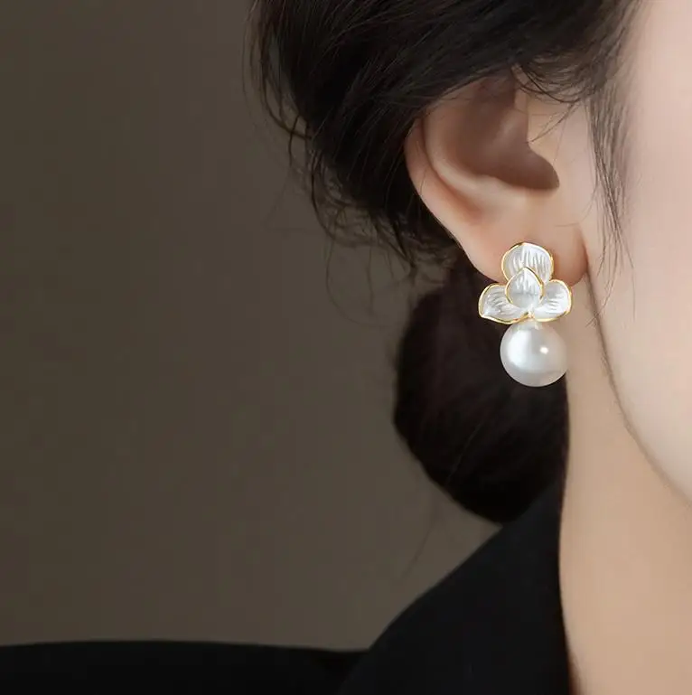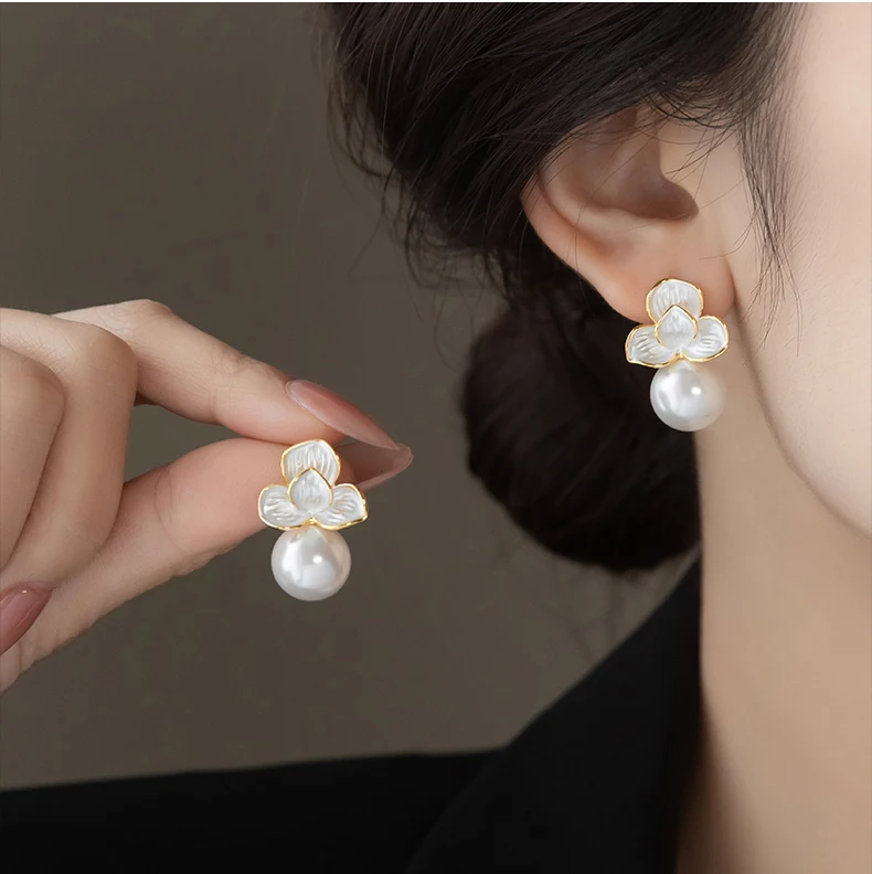 Wholesale Hot Selling Wedding Jewelry Elegant Imitation Pearl Camellia Flower Earrings for Women