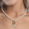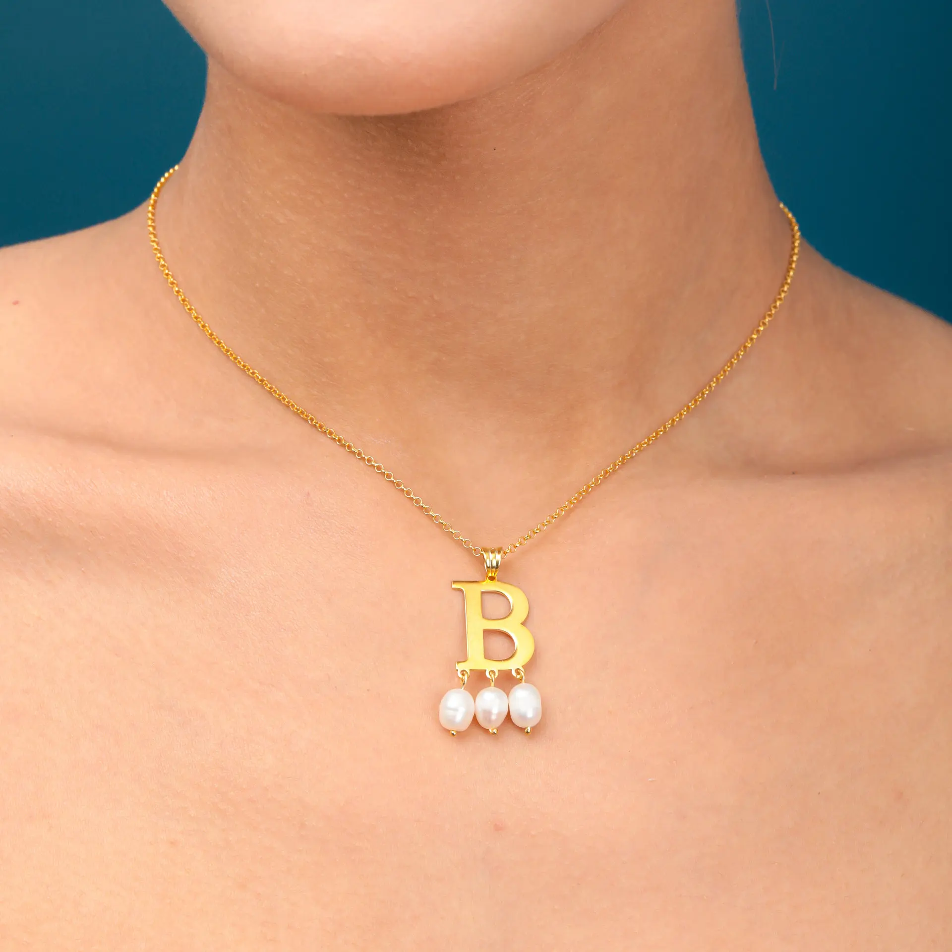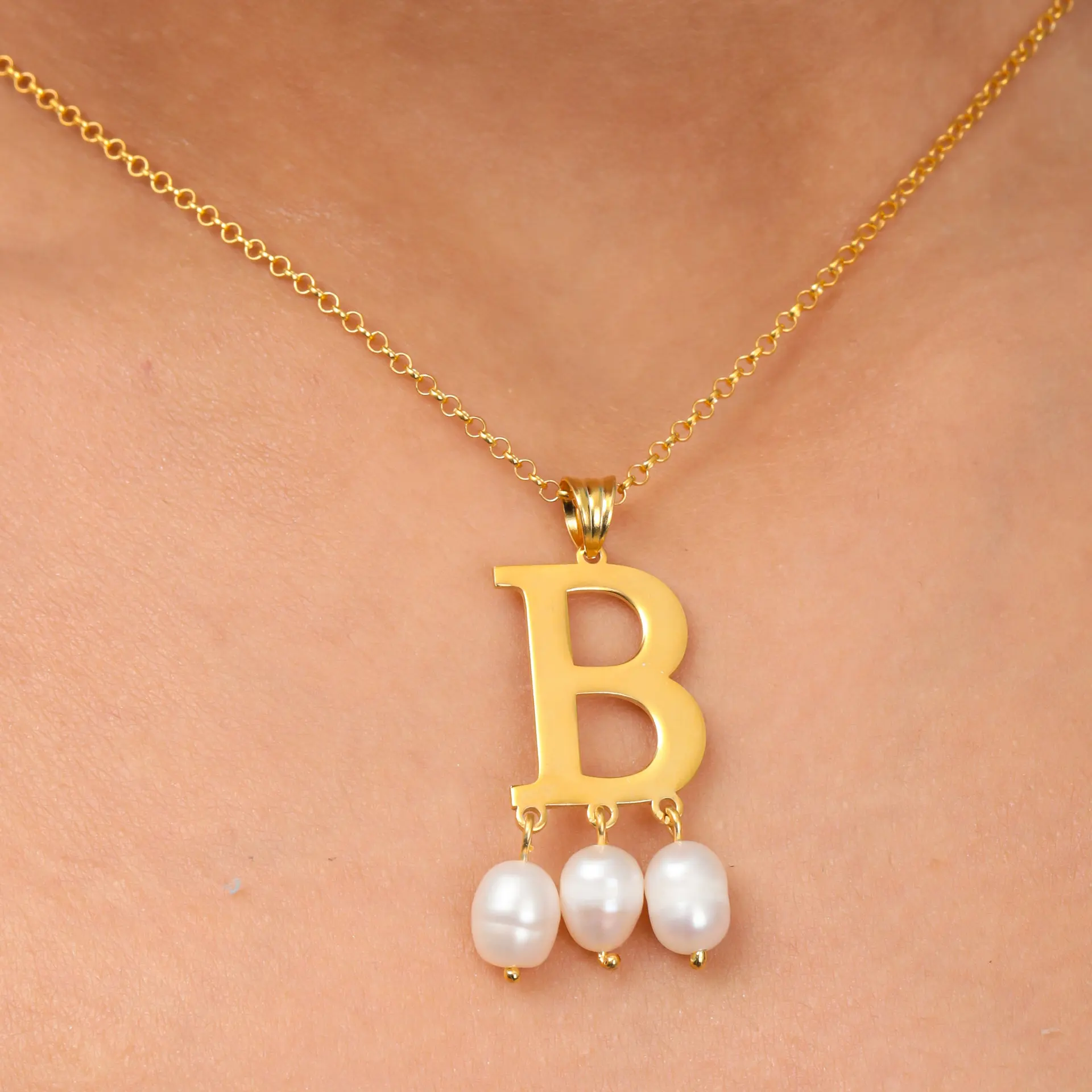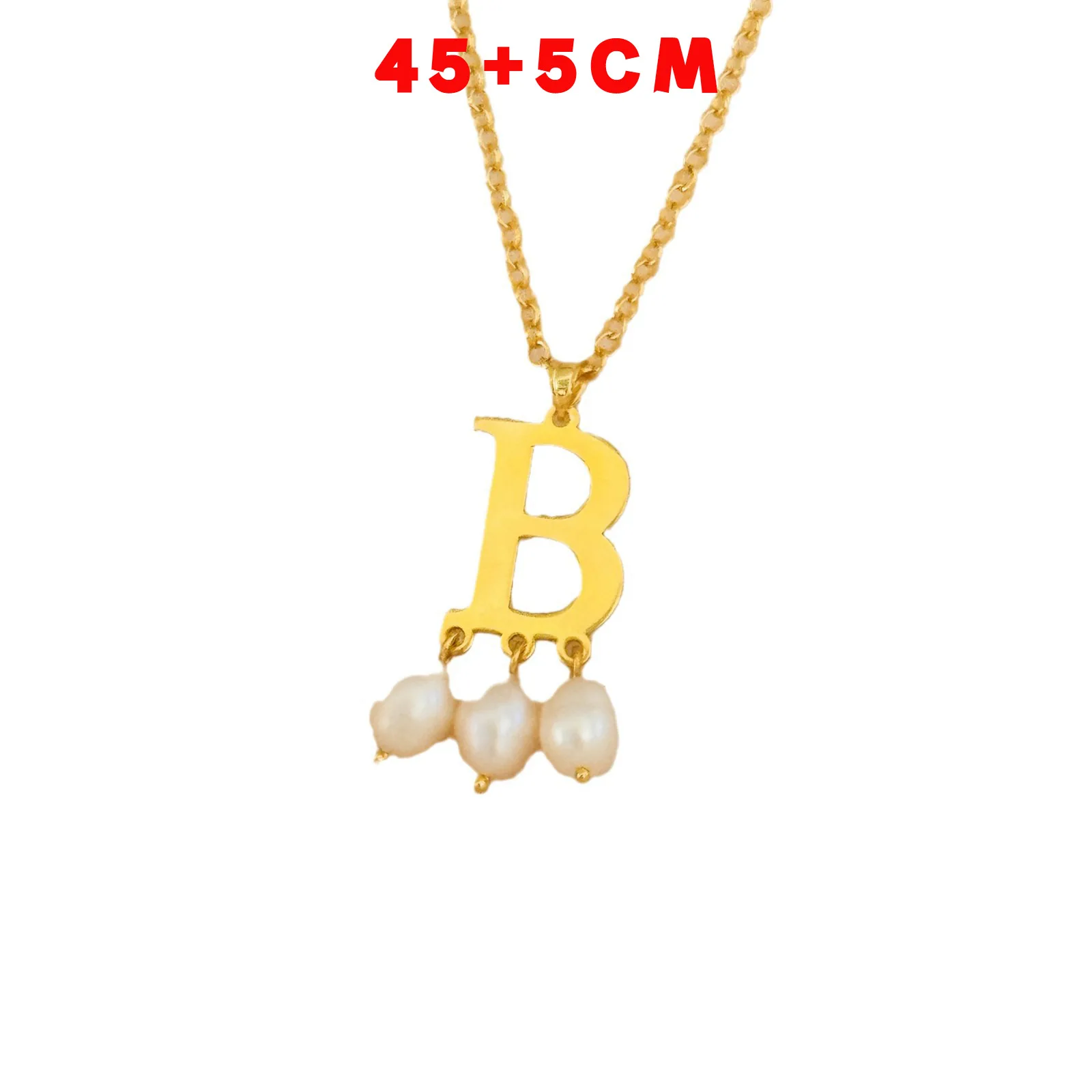 18K Gold Plated Stainless Steel Pearl Necklace with Custom Engraved Christian Letter Initials Waterproof Jewelry for Women Gifts