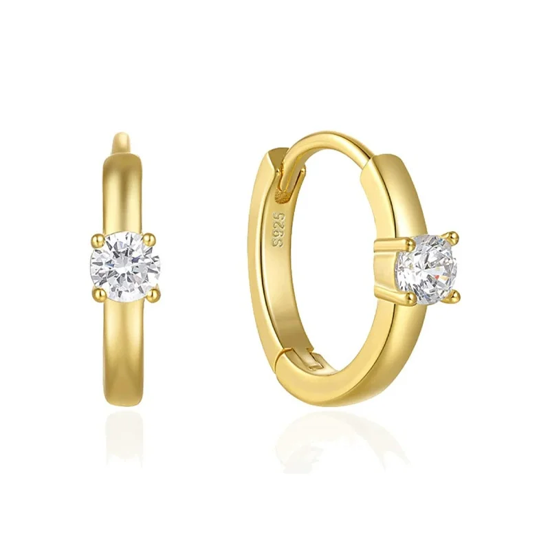 Classic 925 Sterling Silver 18K Gold Plated Zircon Hoop Earrings for Women Shimmering Gold Hoop Earrings with Zircon Jewelry
