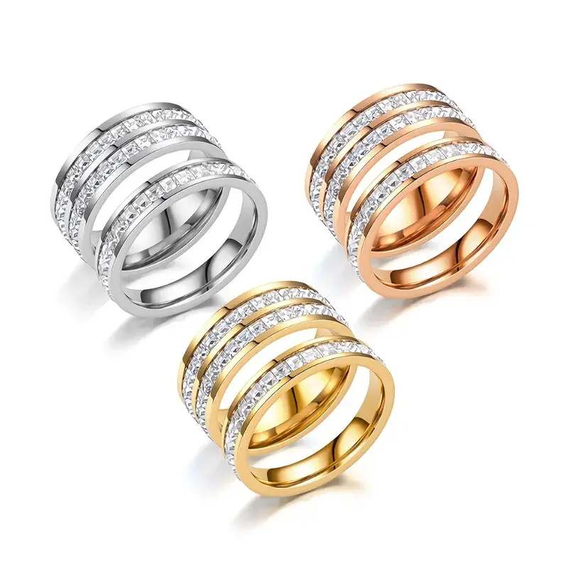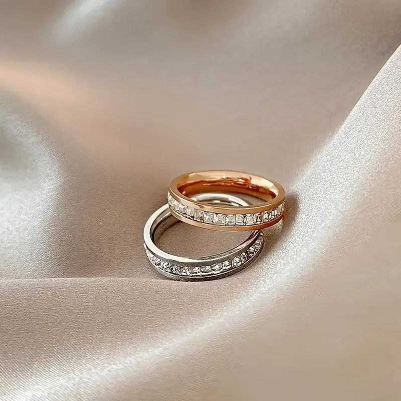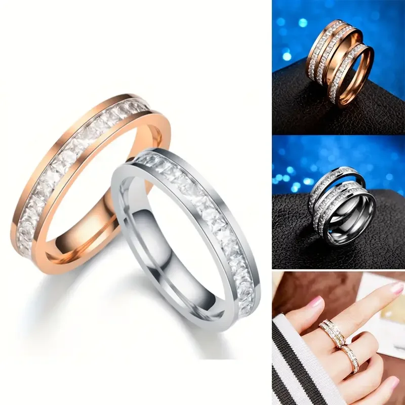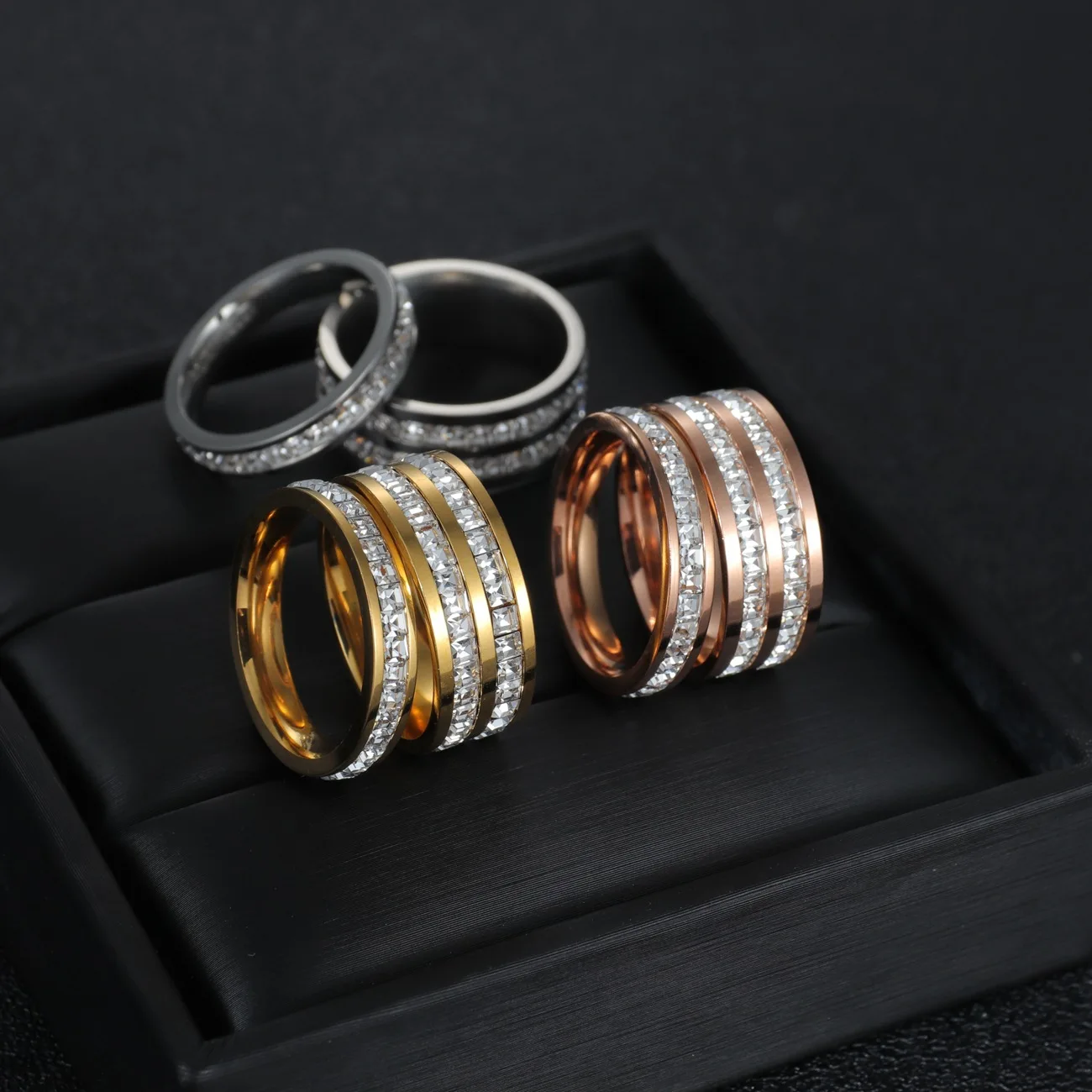 High Quality Waterproof Zirconia Titanium Full Star CZ Couple Ring Exquisite Promise Ring Romantic Valentine's Day Gifts