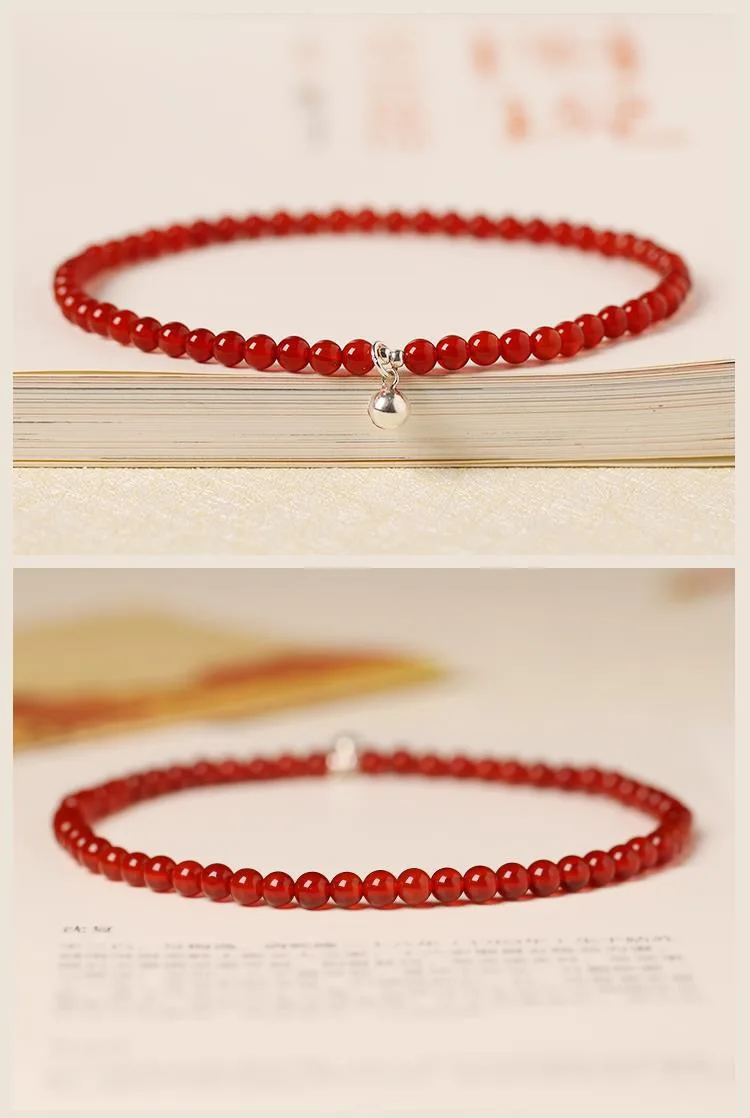 Feng Shui Crystal Wealth Anklet Bracelet for Women Adjustable Natural Red Garnet Beads Anklet Talisman Jewelry