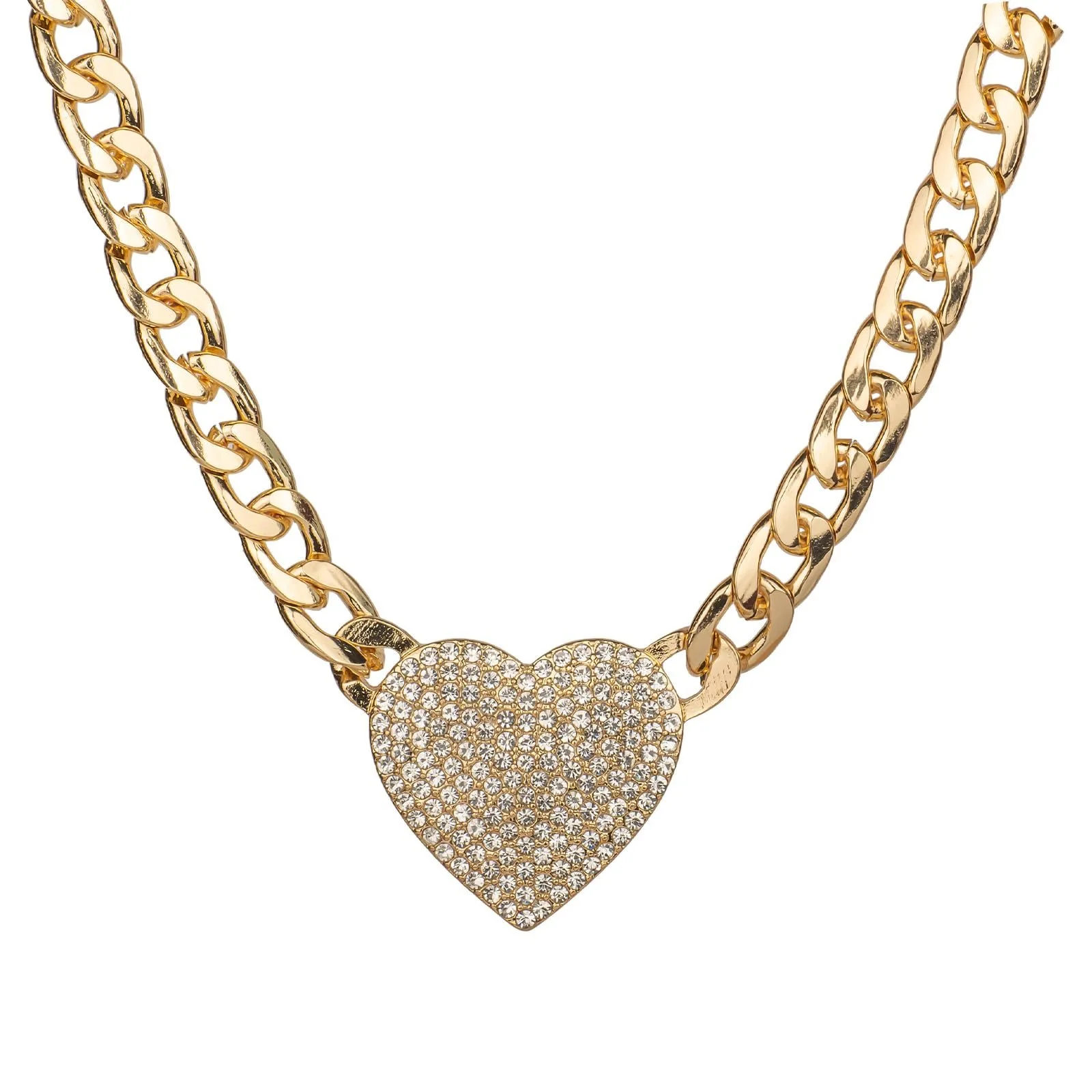 Wholesale Elegant 14K Gold Plated Stainless Steel Necklace for Women Quiet Luxury Heart Zircon Pendant Necklace