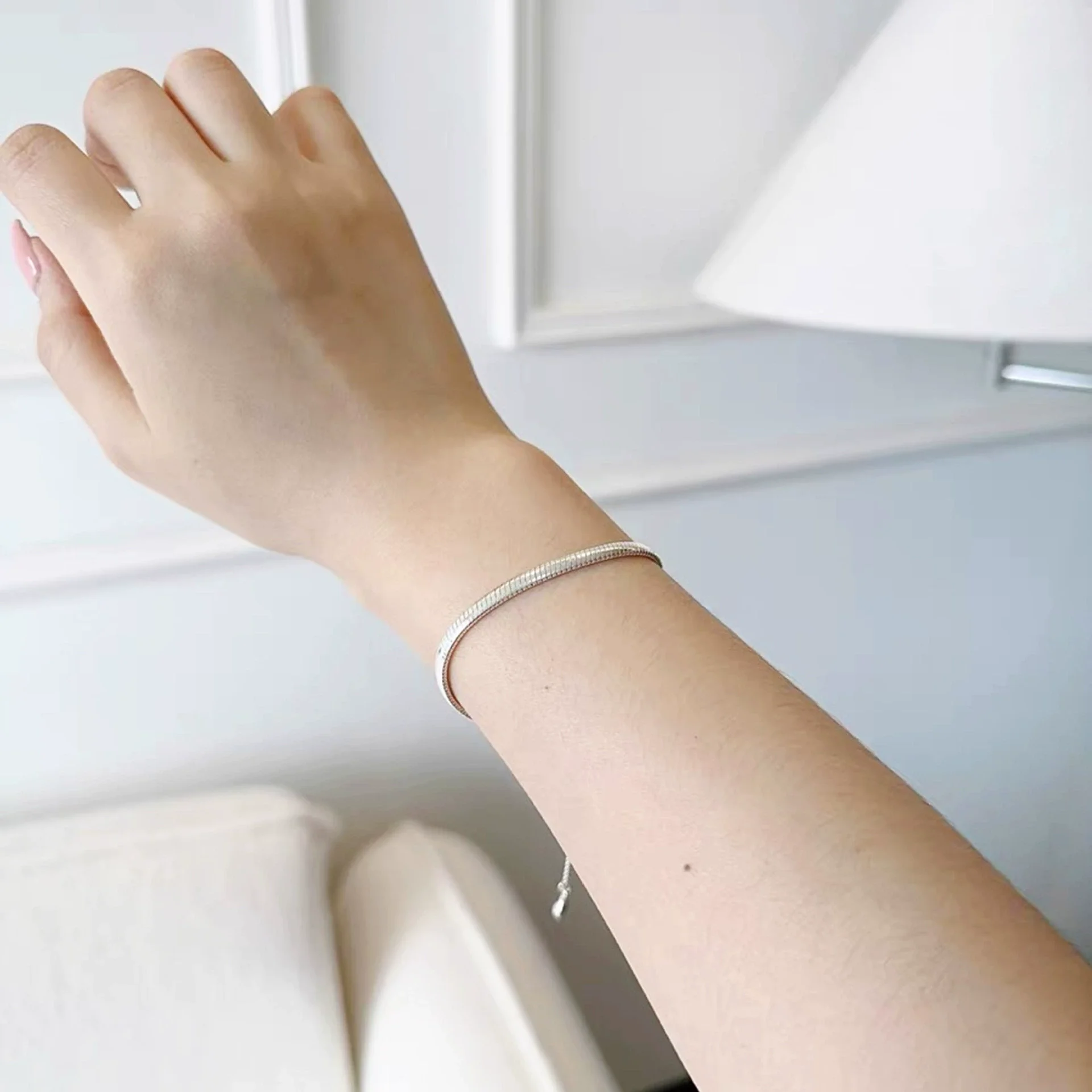 Elegant 925 Silver Round Chain Bracelet Trendy Heart Shape Luxurious Texture for Daily and Casual Occasions