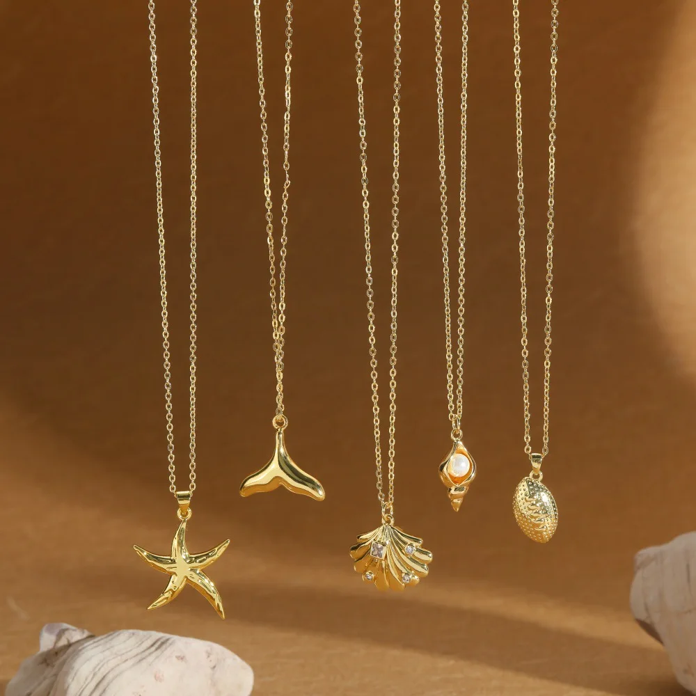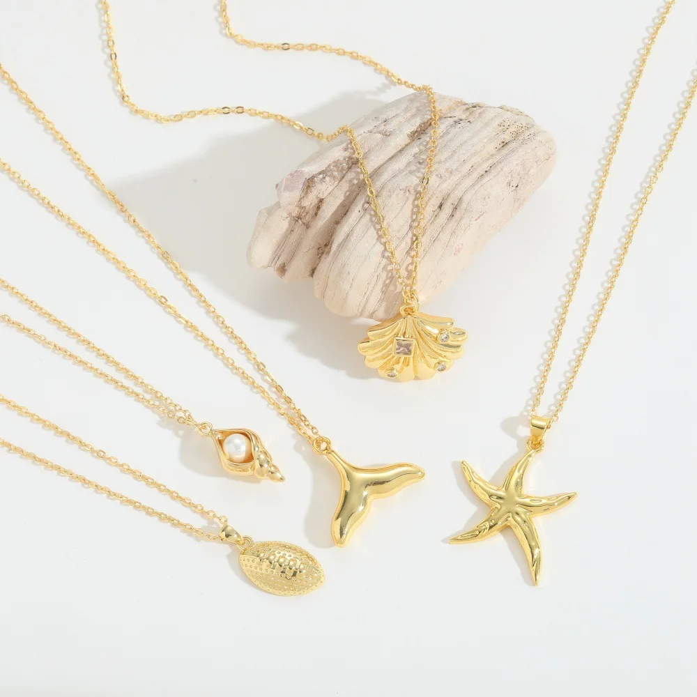 Copper Alloy Wave-Inspired Starfish Pendant Necklace Tropical Beach Jewelry for Women Summer Vacation Layered Bohemian Necklace