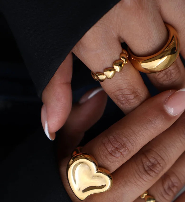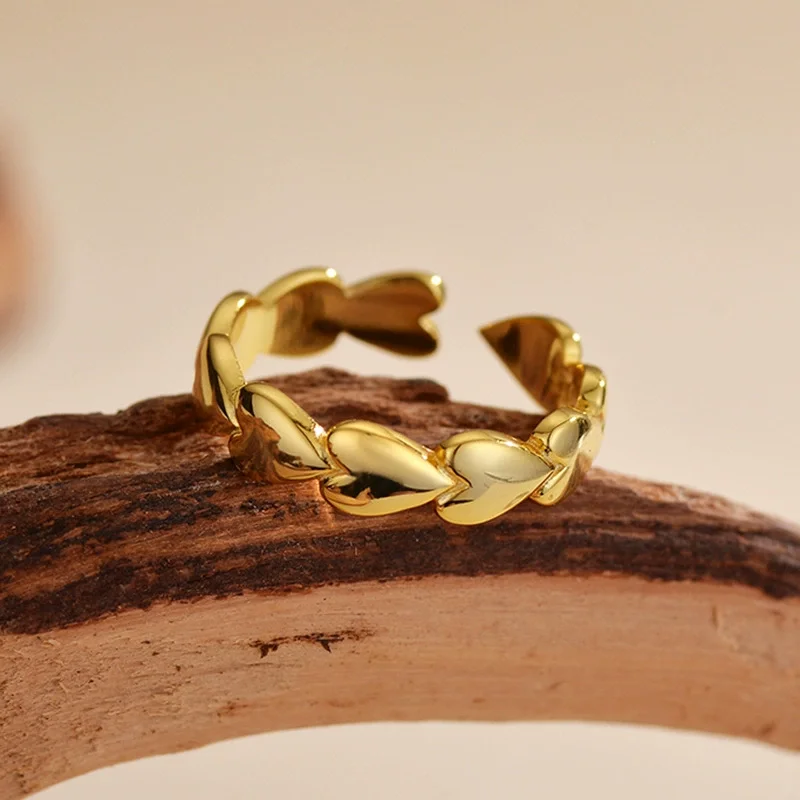 Wholesale Fashion 925 Silver Heart-Shaped Ring Set Gold-Plated Love Symbol Couple Rings Romantic Jewelry Gift for Her