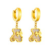 Minimalist Titanium Steel Butterfly Bear Necklace Earrings Set for Women Durable Double Sided Shell Bear Pendant Jewelry Set