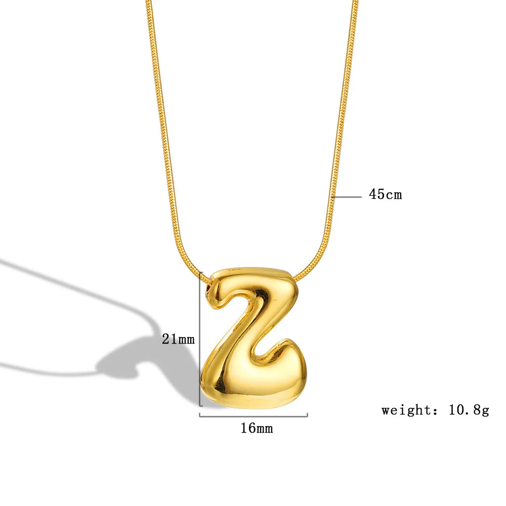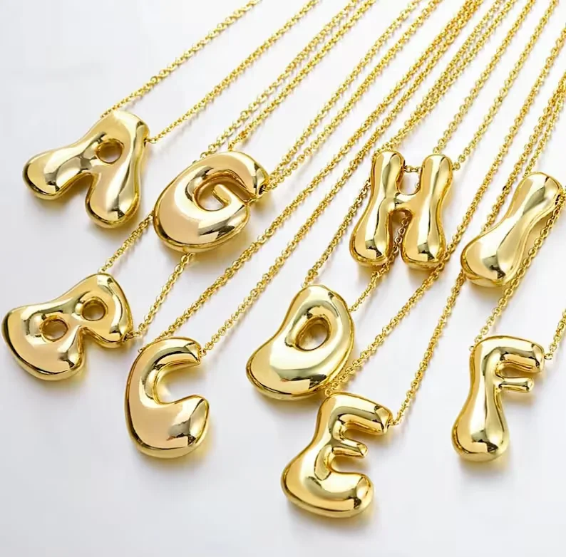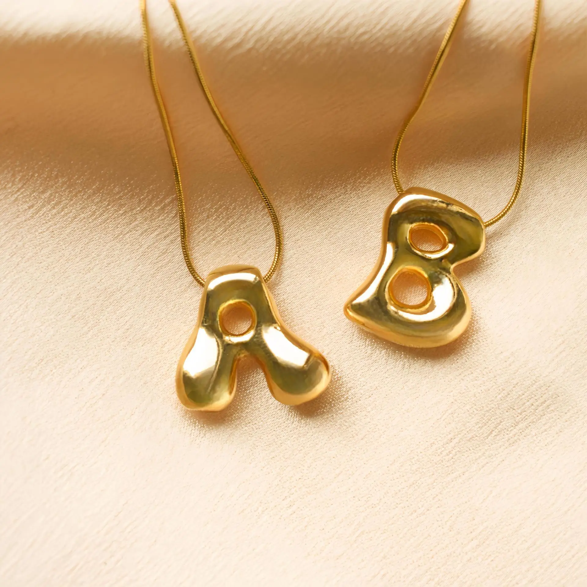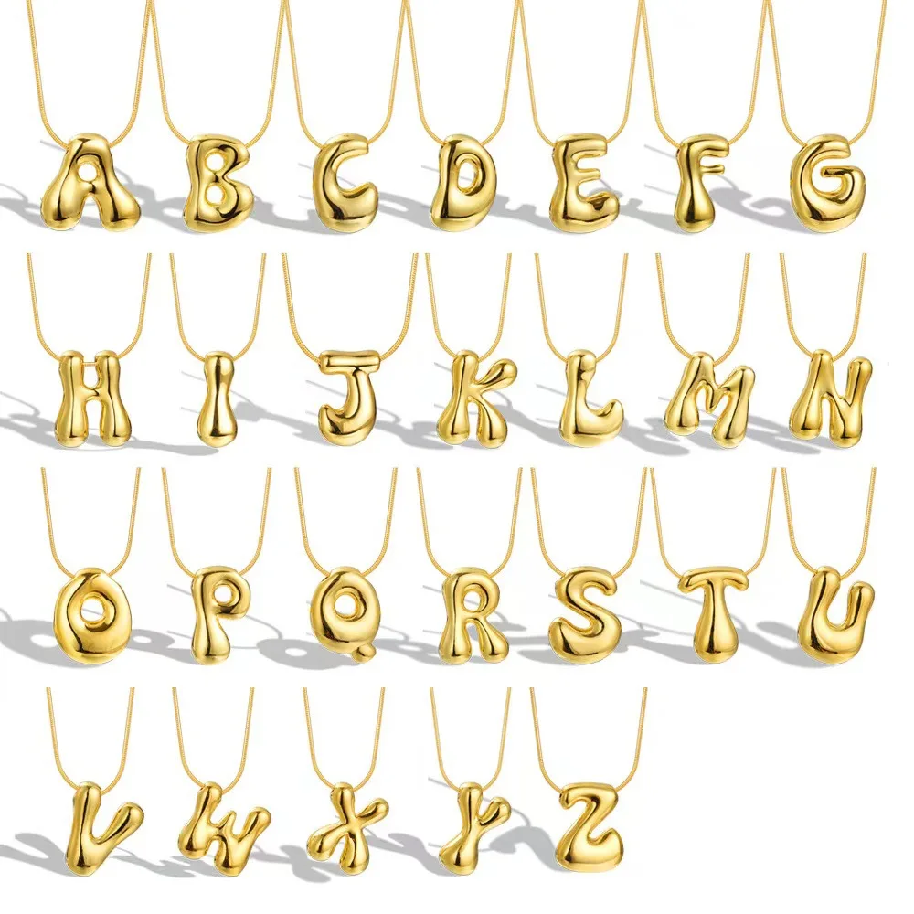 Dainty Gold Plated Bubble Letter Charm Necklace Balloon Initial Necklace Puffy Name Personalized Jewelry Gift for Women