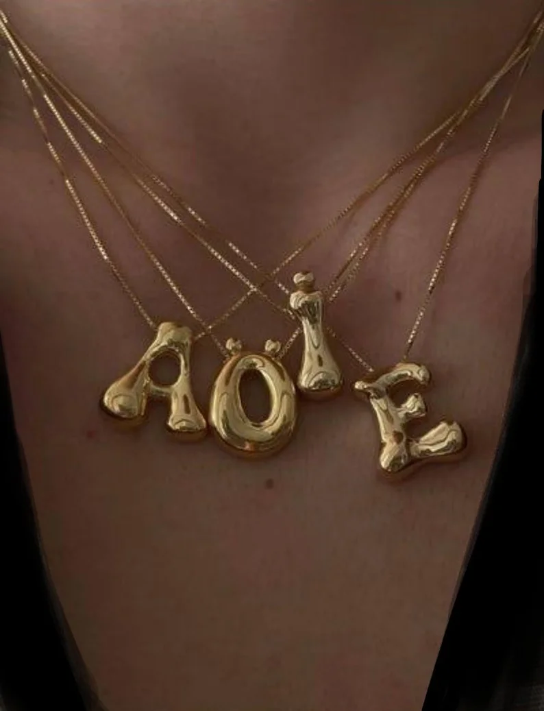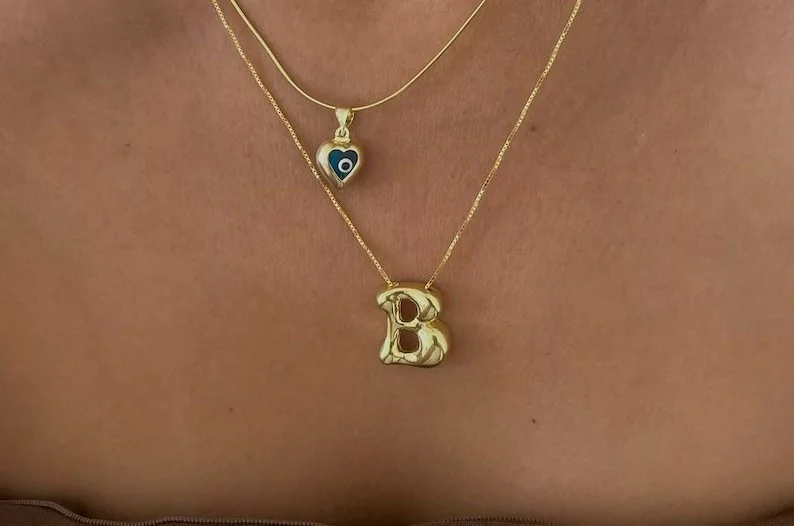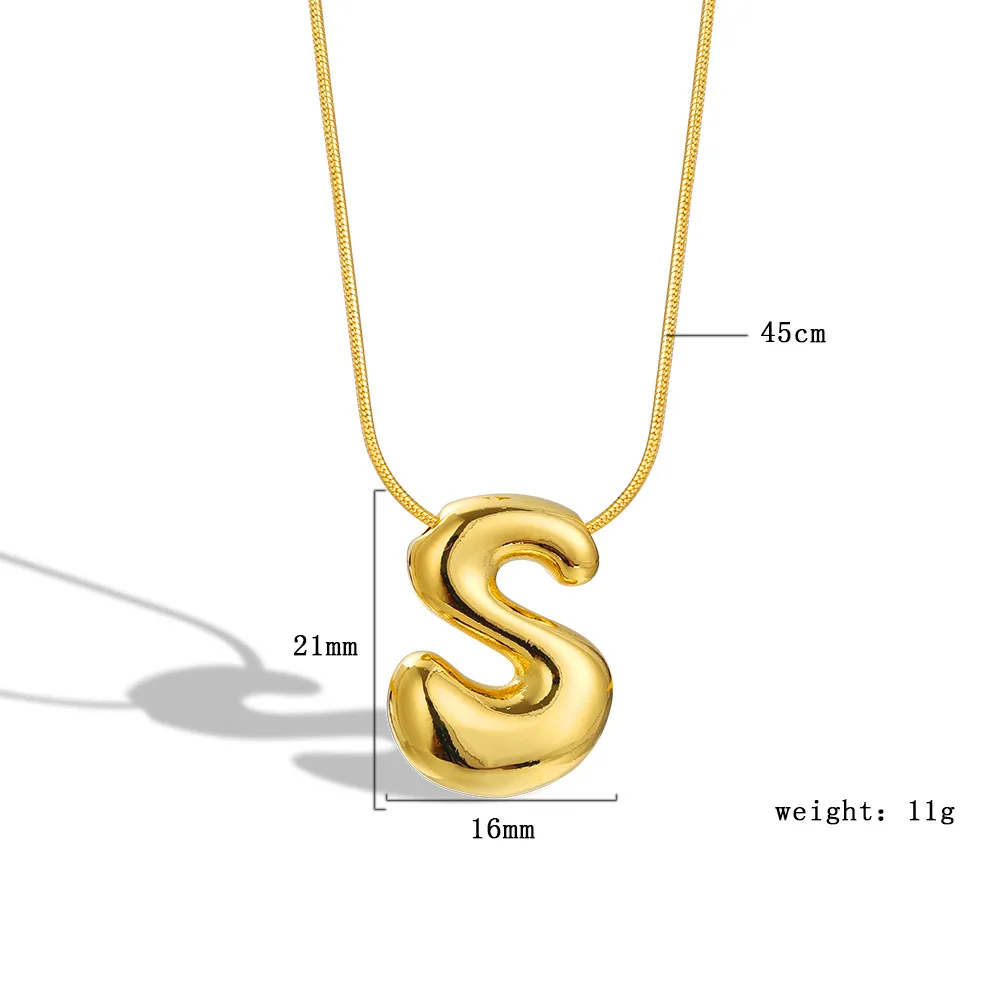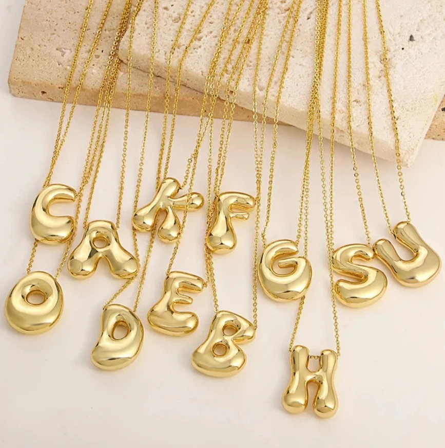 Dainty Gold Plated Bubble Letter Charm Necklace Balloon Initial Necklace Puffy Name Personalized Jewelry Gift for Women
