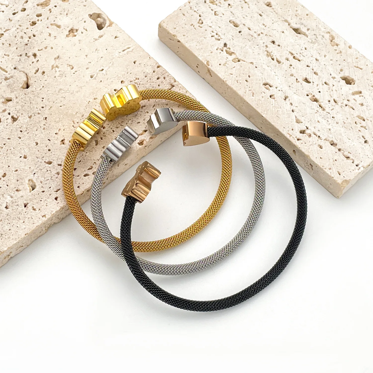 Unisex Twisted Cable Stainless Steel Bracelet with Round Heart Charms Durable B2B Wholesale Fashionable Bangles for Men Women
