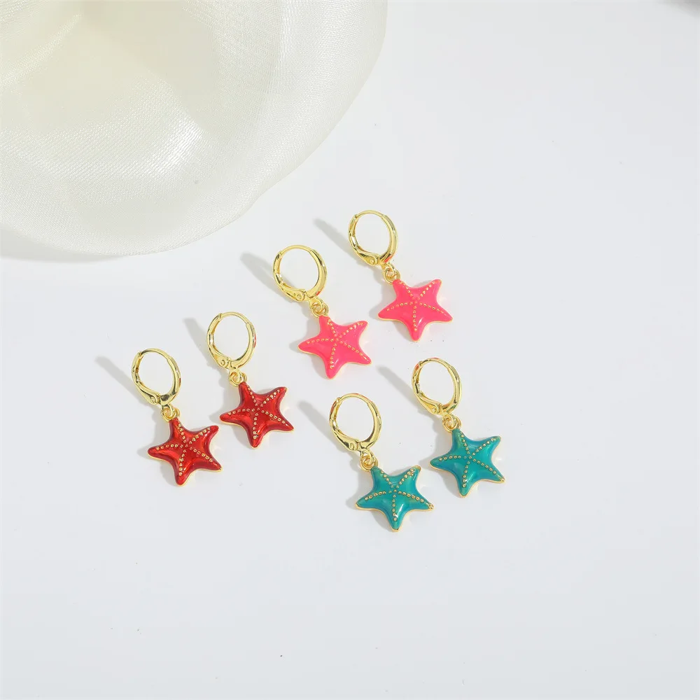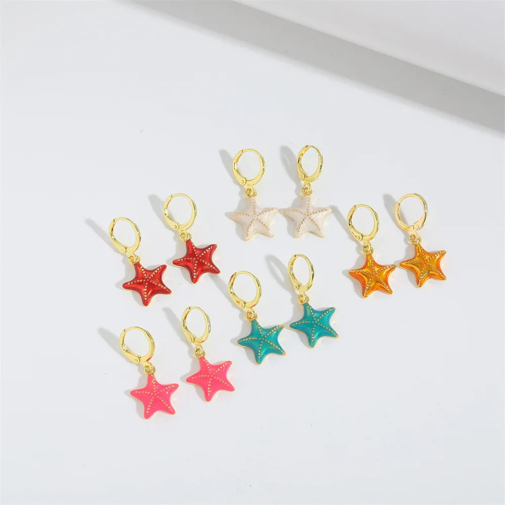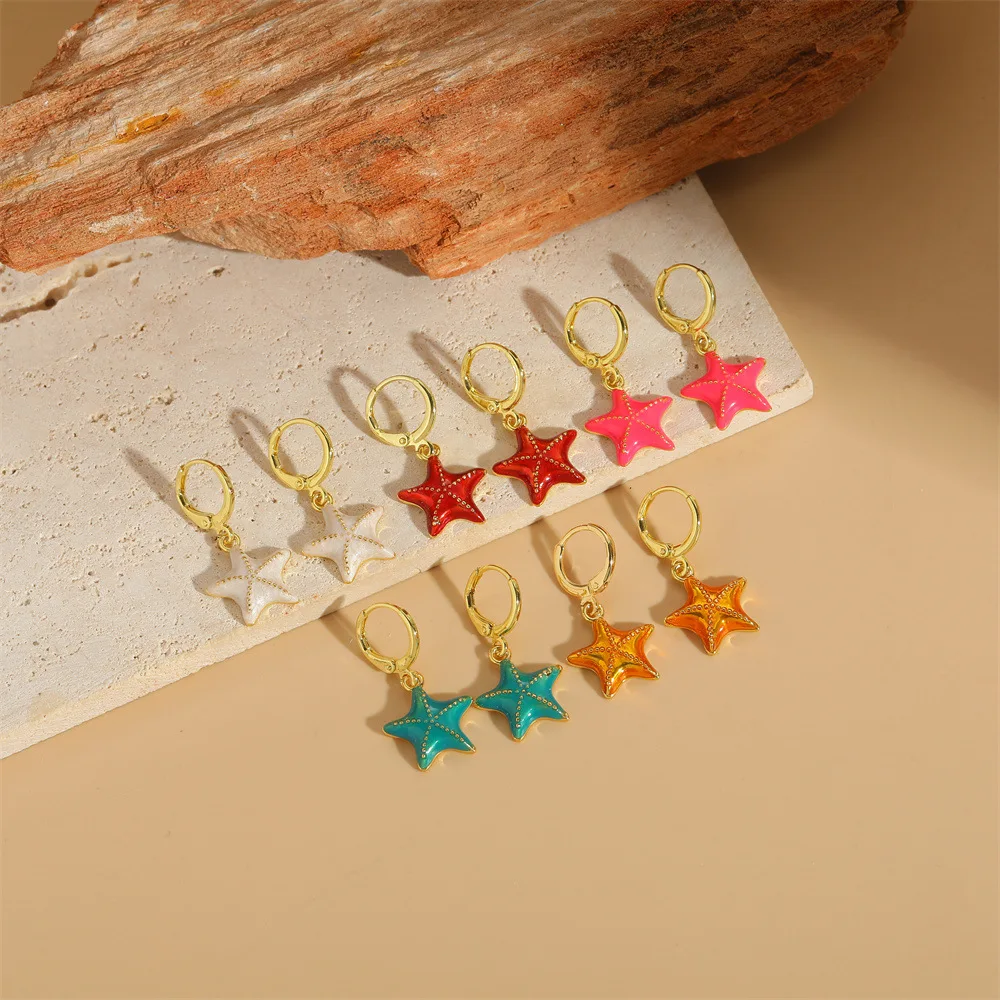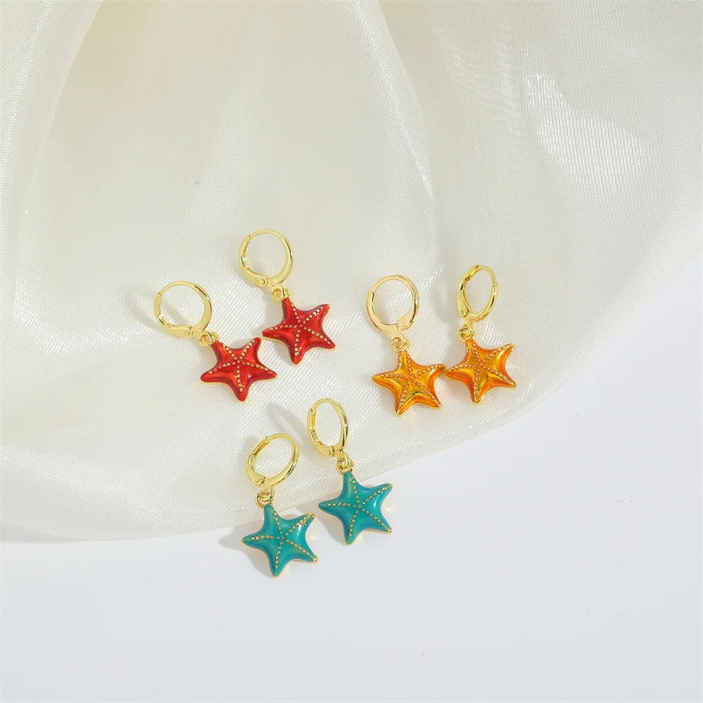 Trendy Summer Starfish Stud Earrings With Copper Plating and Orange Accents for Casual Wear