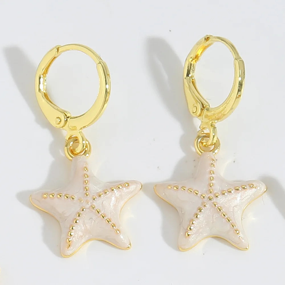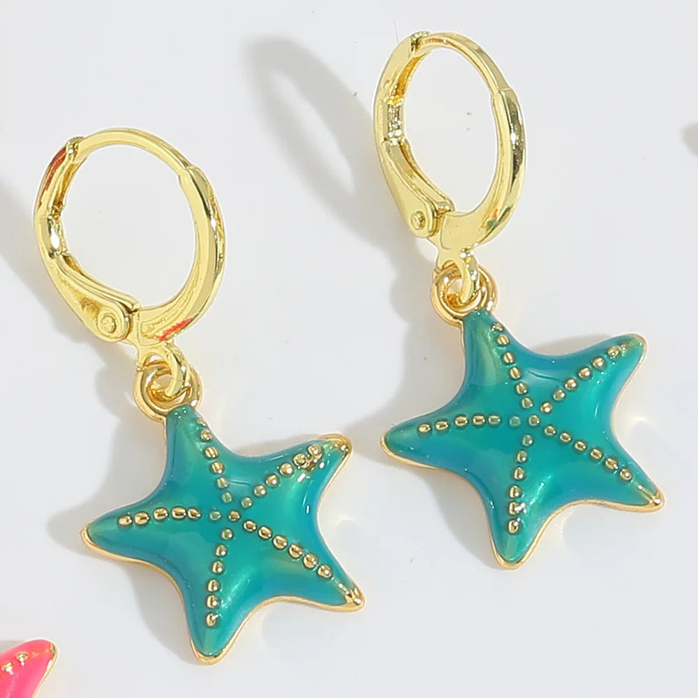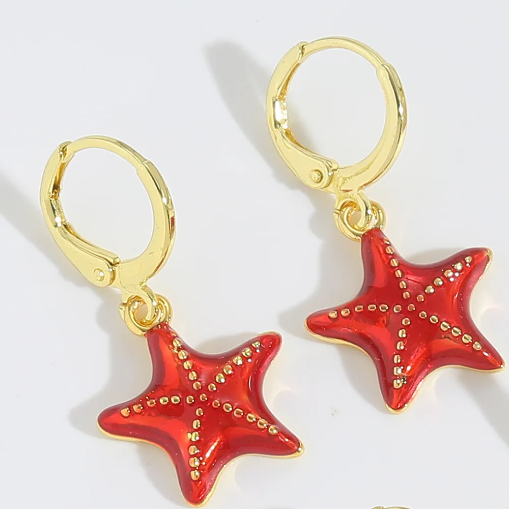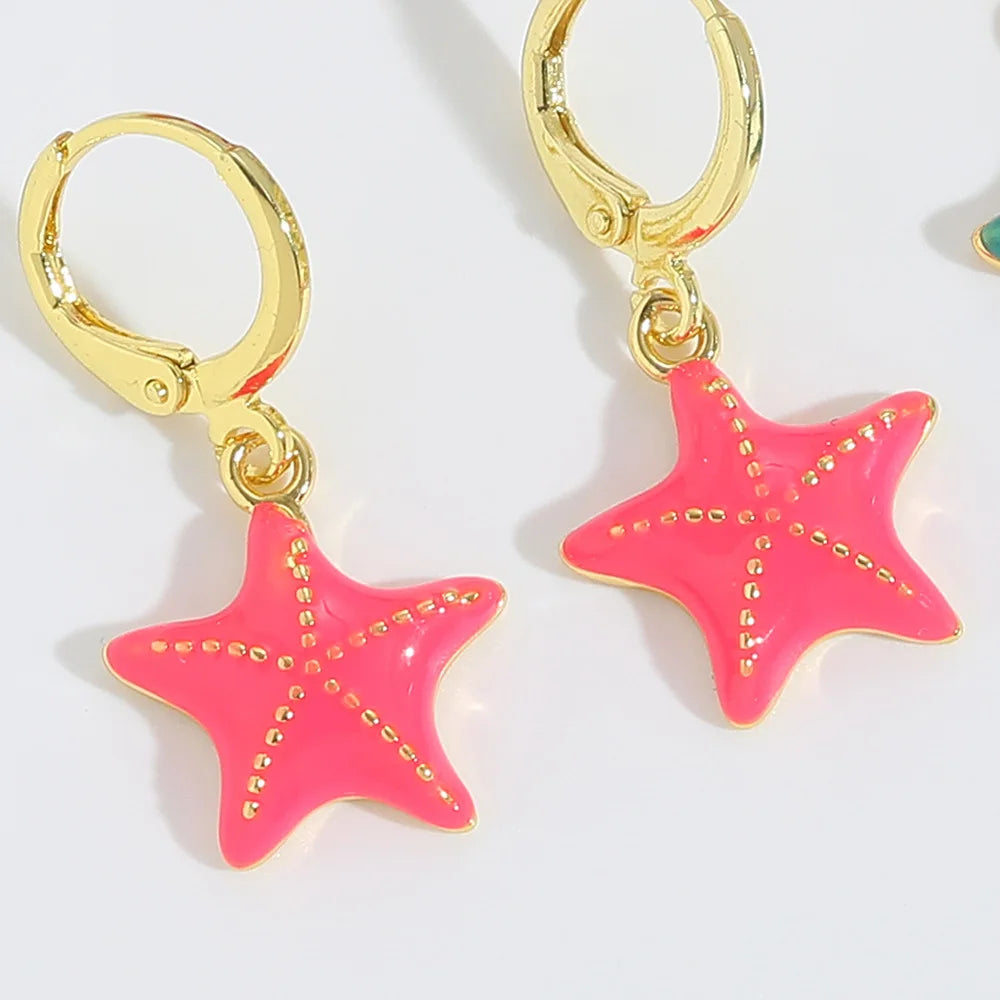 Trendy Summer Starfish Stud Earrings With Copper Plating and Orange Accents for Casual Wear