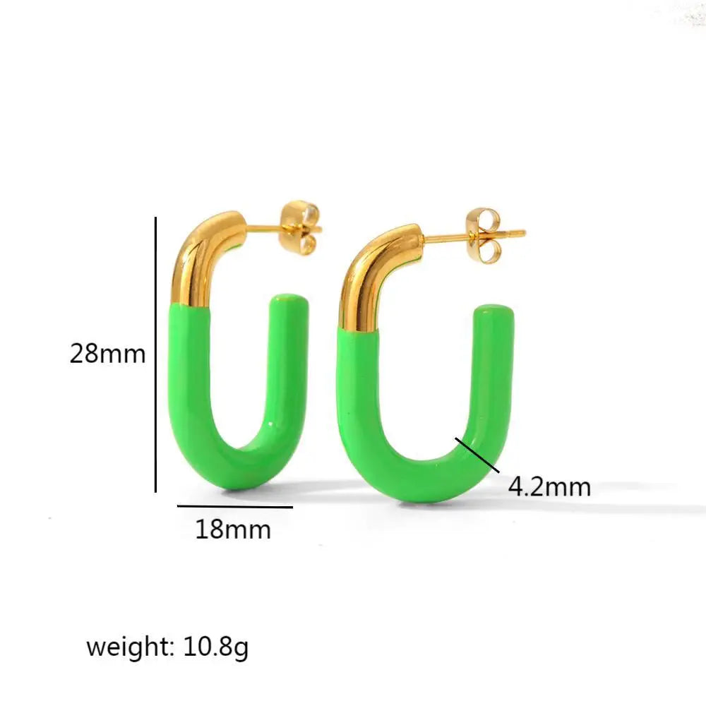 Ins Colorful Candy Earrings 18K Gold Plated Stainless Steel Geometric Square C Earrings for Women Jewelry Gift