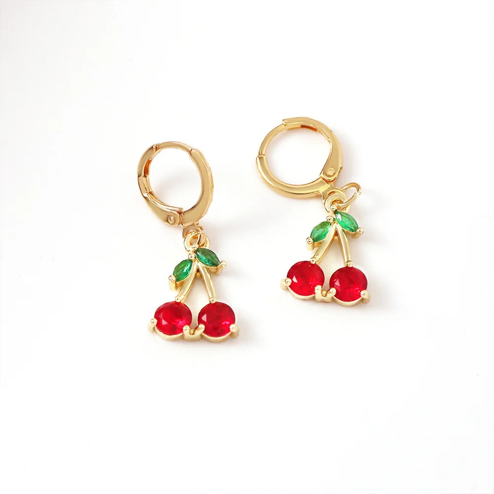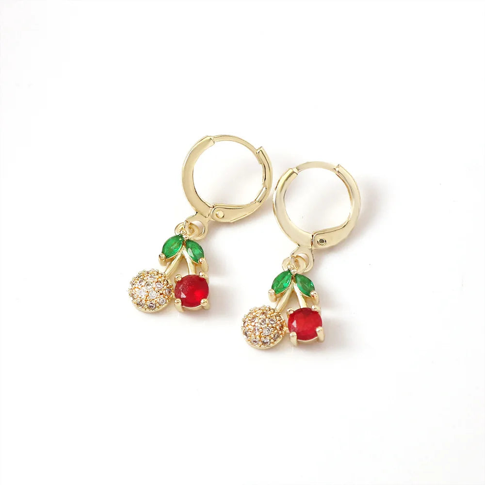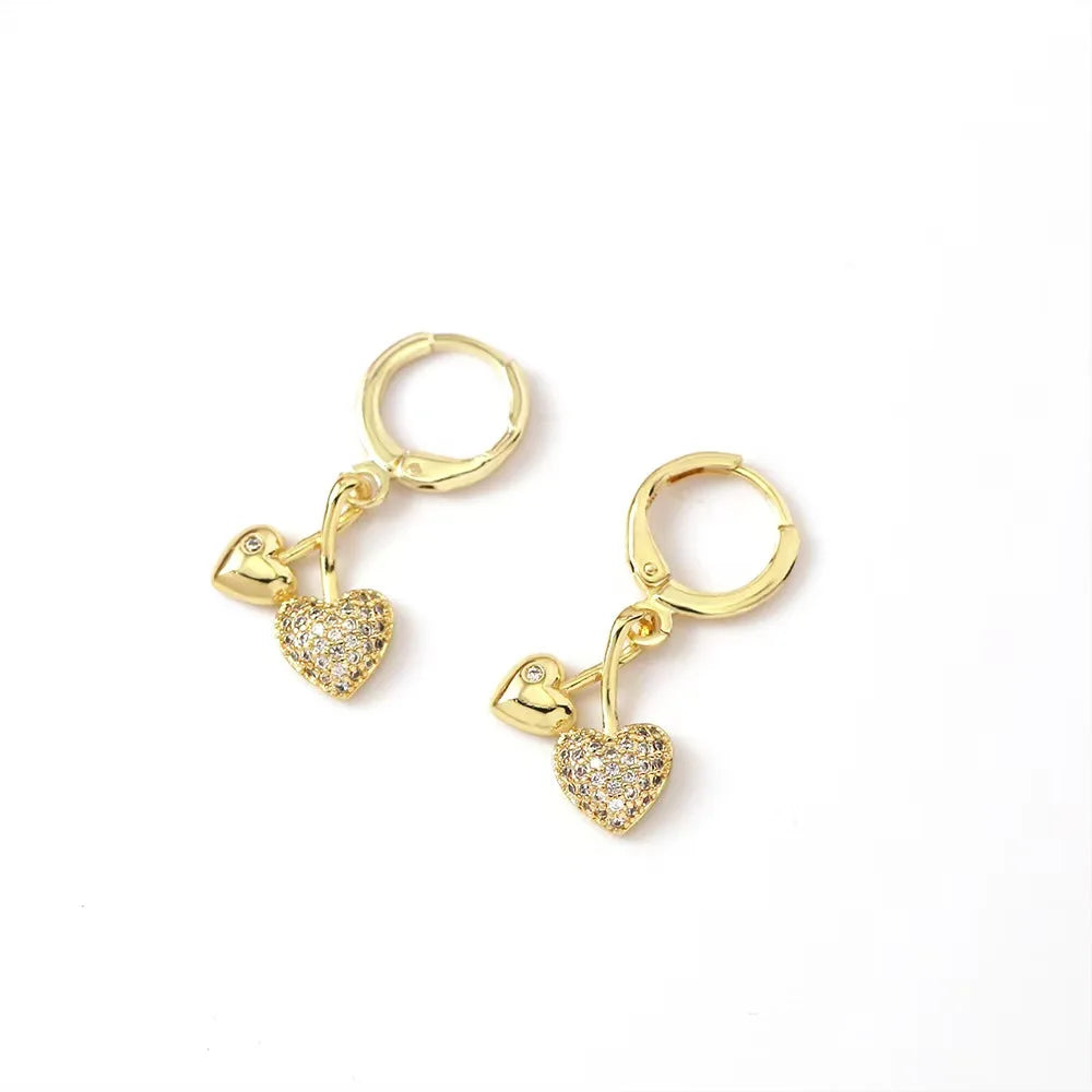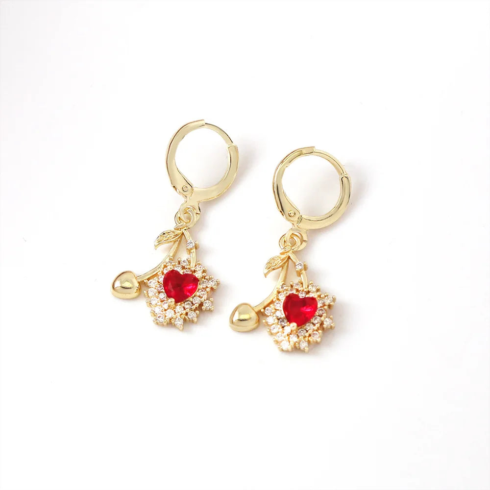 Wholesale 18k Gold Plated Cherry Heart Earrings Cubic Zirconia Hoop Earrings Hypoallergenic Fashion Jewelry for Women