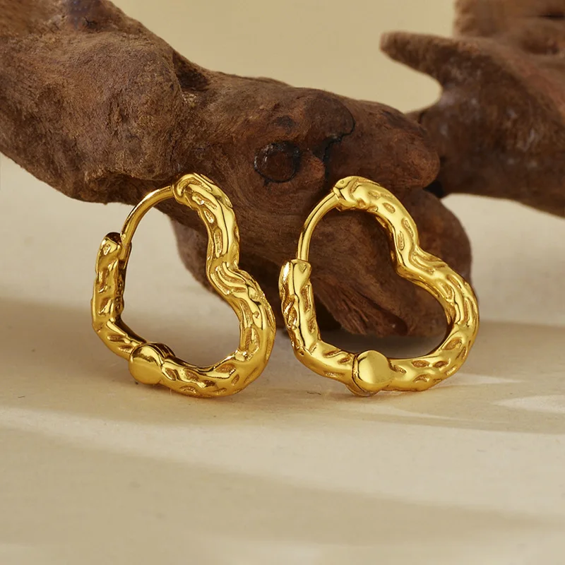 European American Fashion 18K Gold Plated Irregular Texture Earrings for Women Ins Style Circle Ear Hooks for Jewelry