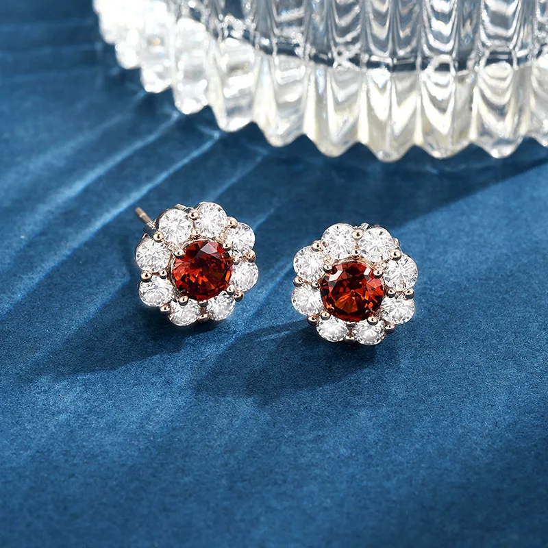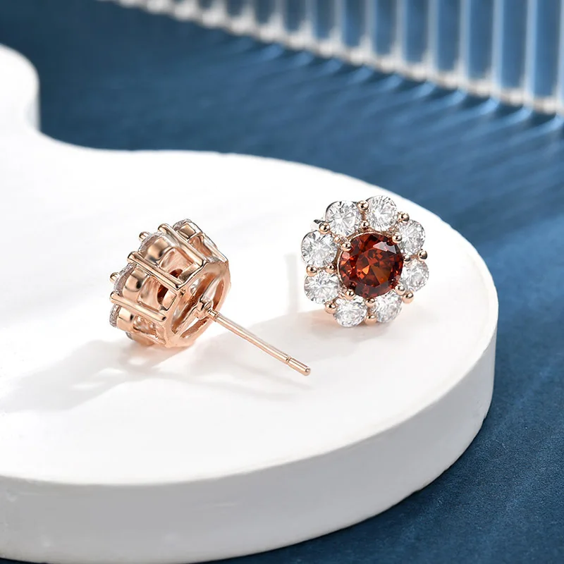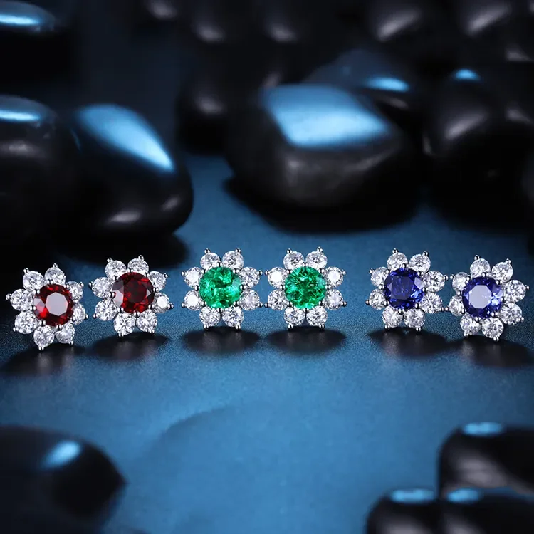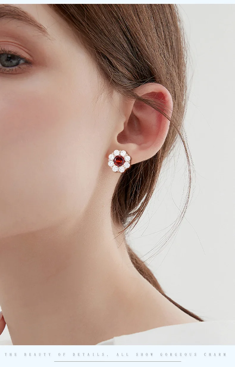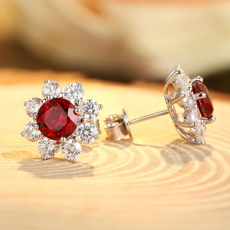 High Quality 925 Sterling Silver Ruby Earrings Retro Gold Plated Cubic Zirconia Wedding Stud Earrings Jewelry for Woman