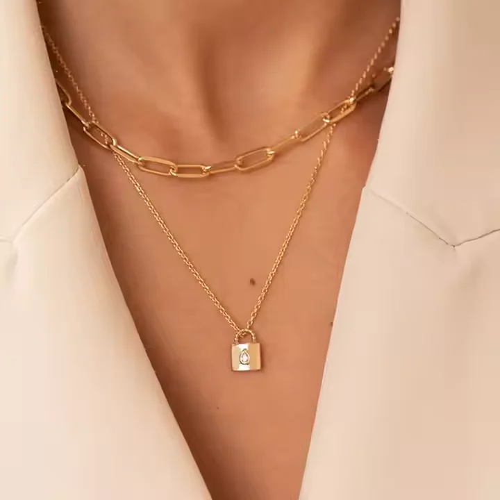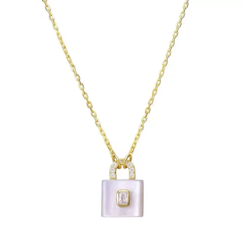 High Quality Padlock Pendant Necklace S925 Sterling Silver Lock Necklace With Zircon Stone for Women