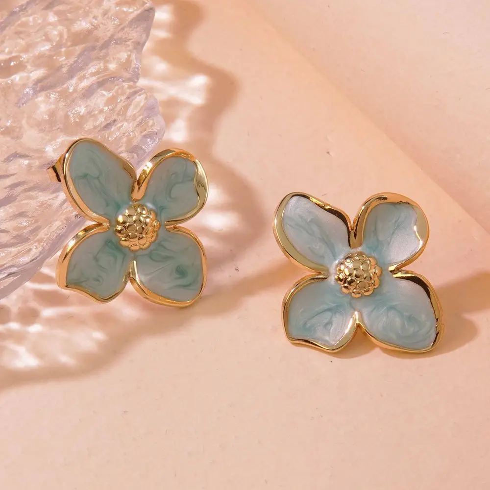 18K Gold Plated Multi-colored Enamel Flower Stud Earrings for Women Hypoallergenic Stainless Steel Jewelry