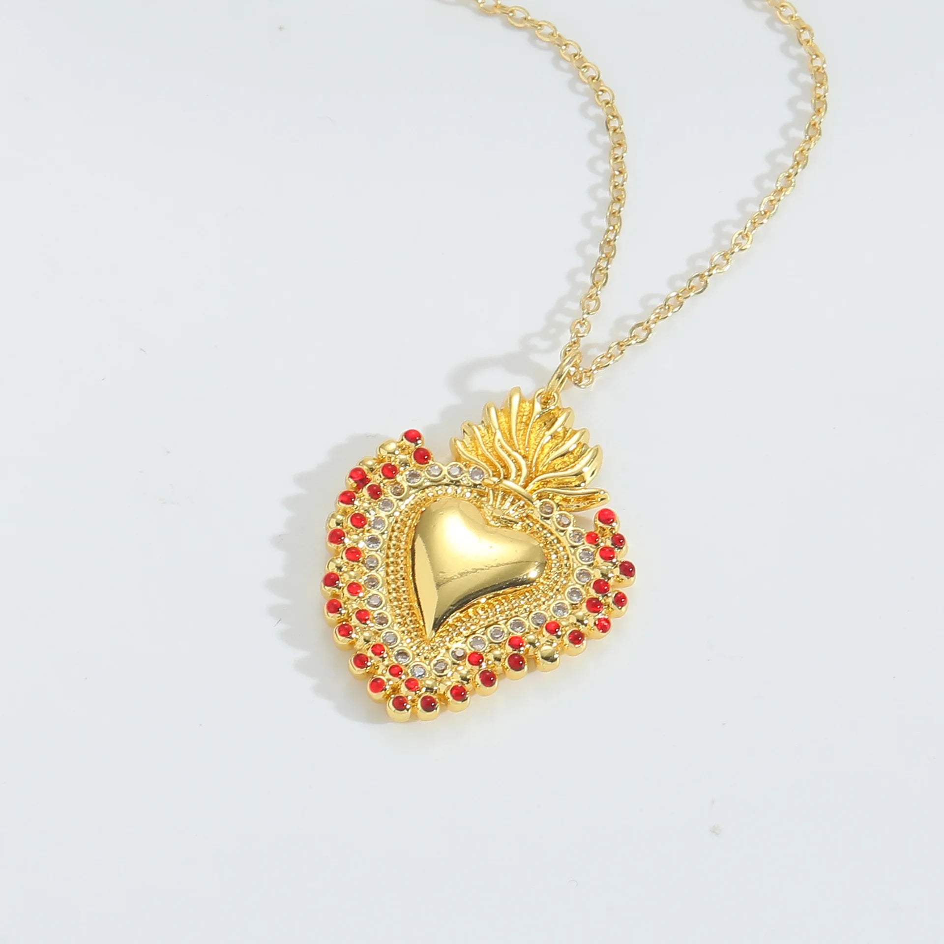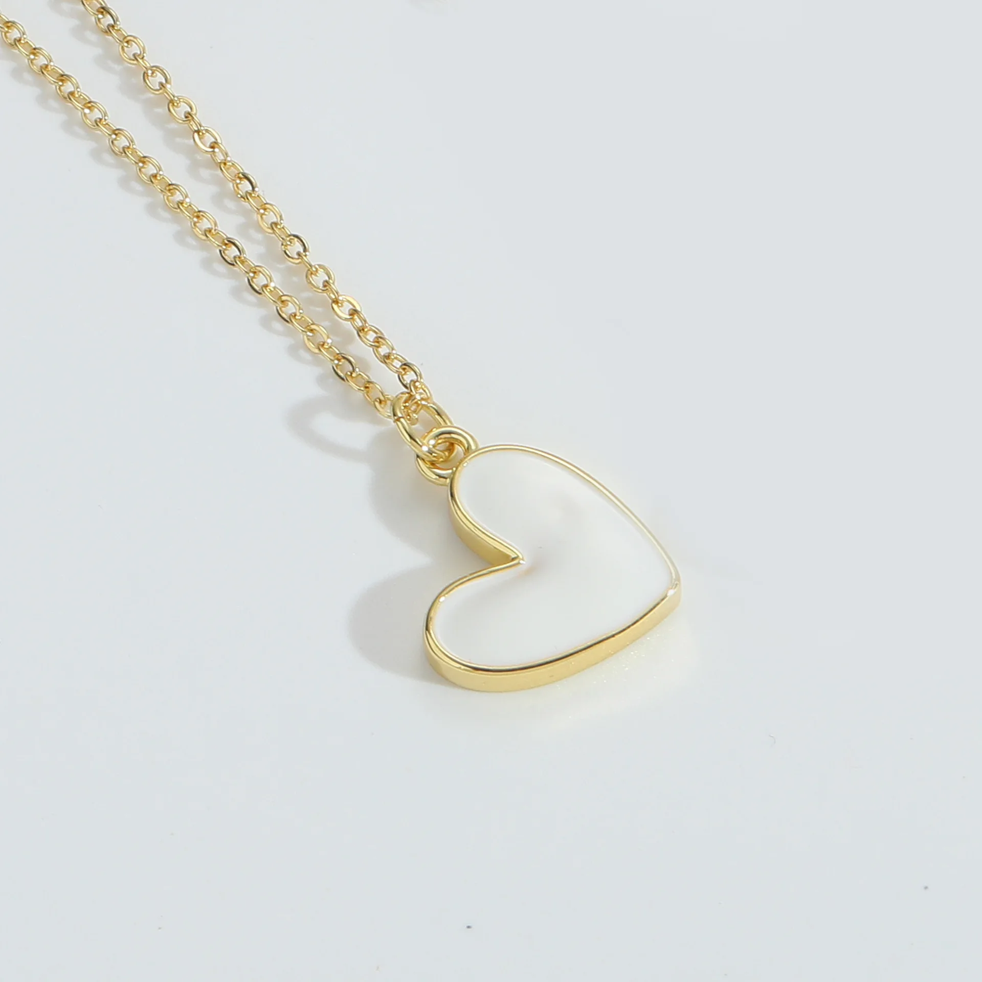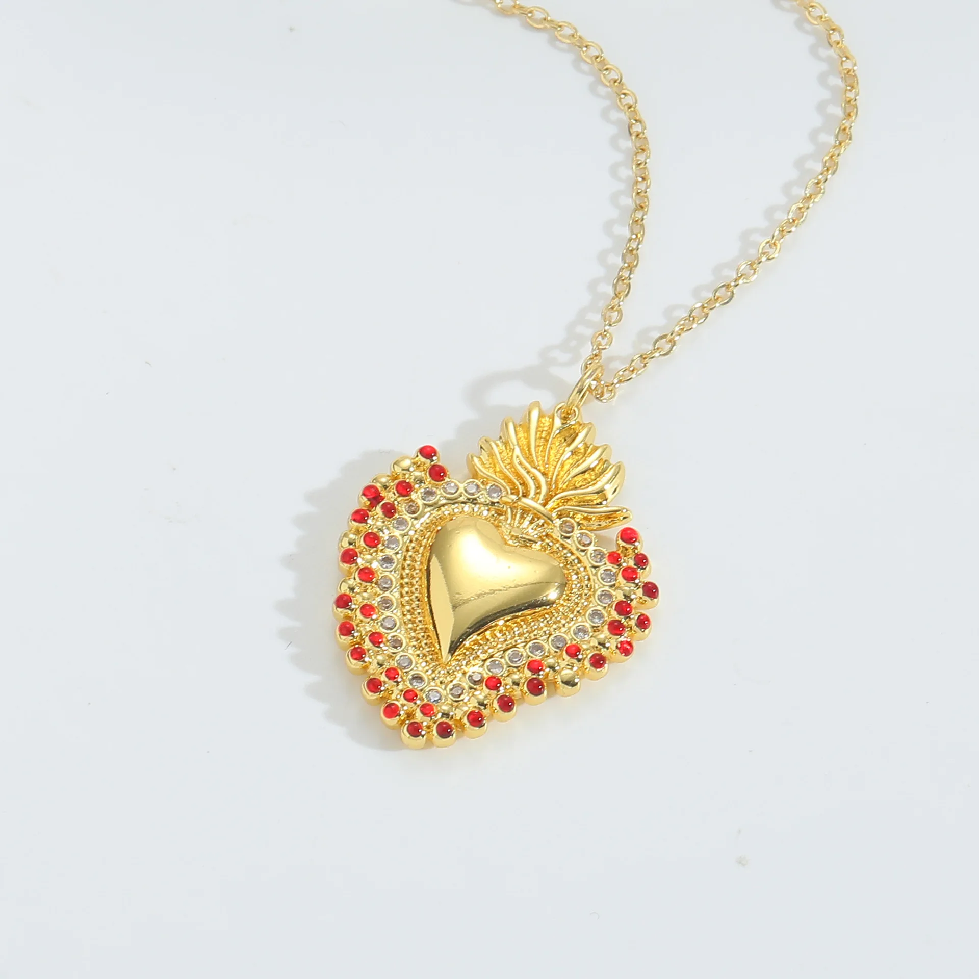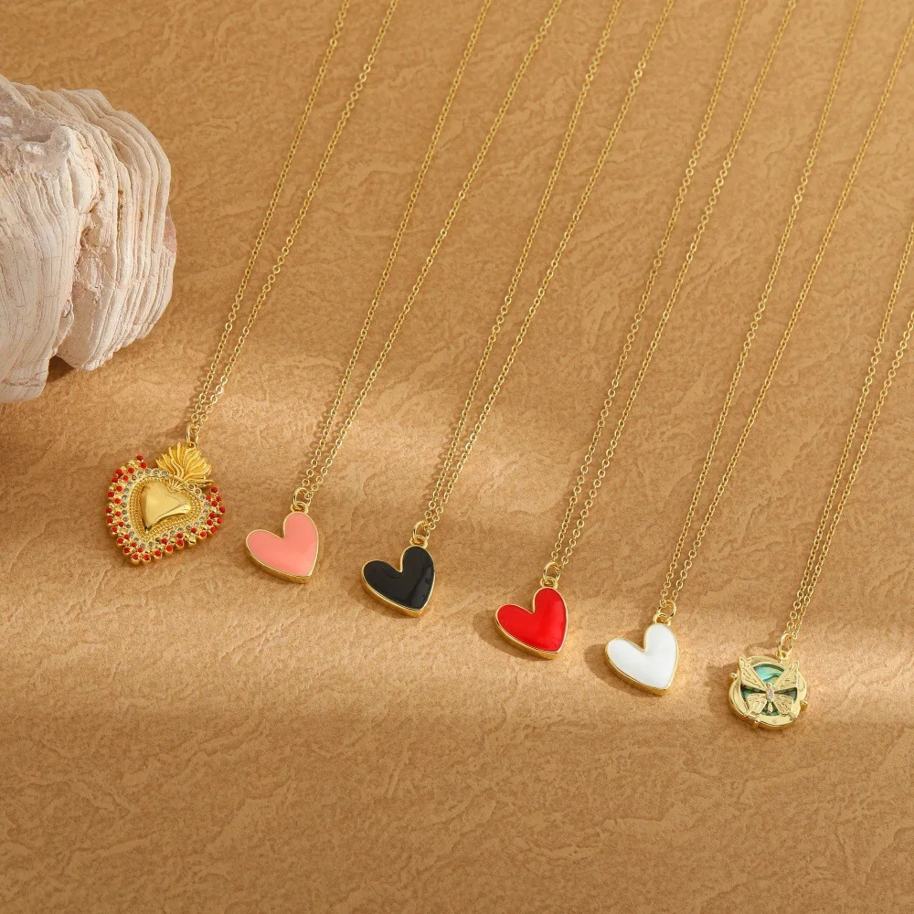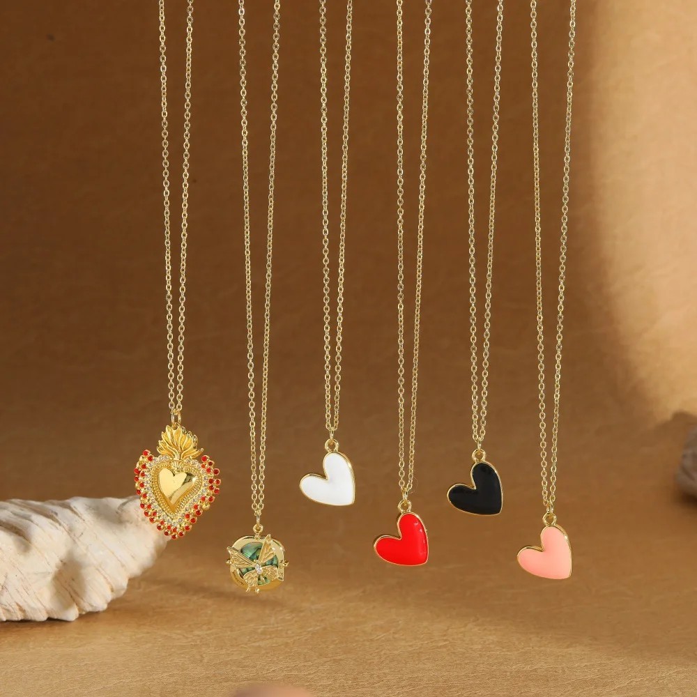 Innovative 18K Gold Plated Copper Heart Necklace with Zircon Pendant Colorful Vintage Style Chain for Women Party Jewelry Gift