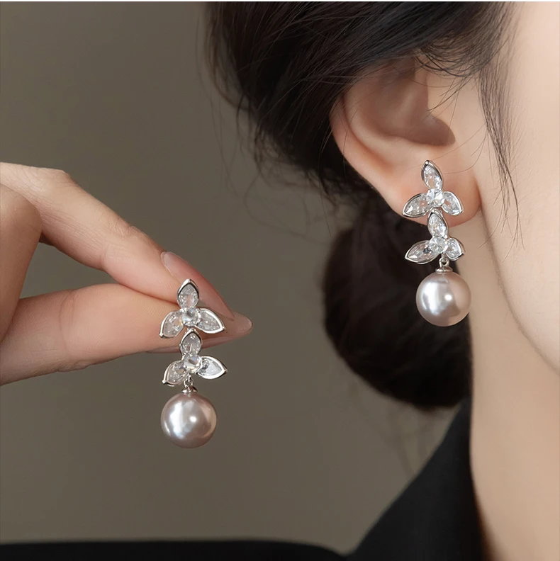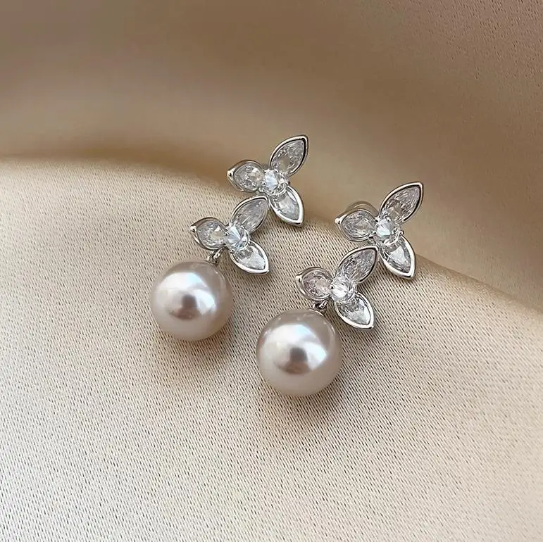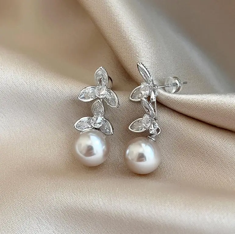 Wholesale Hot Selling Wedding Jewelry Elegant Imitation Pearl Zircon Earrings for Women
