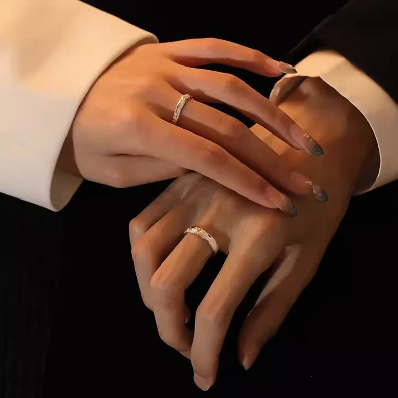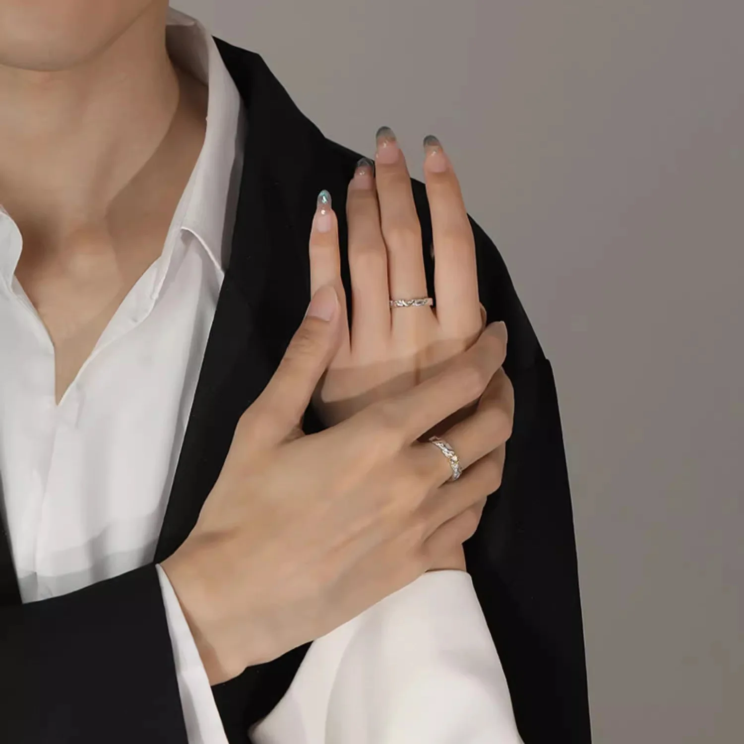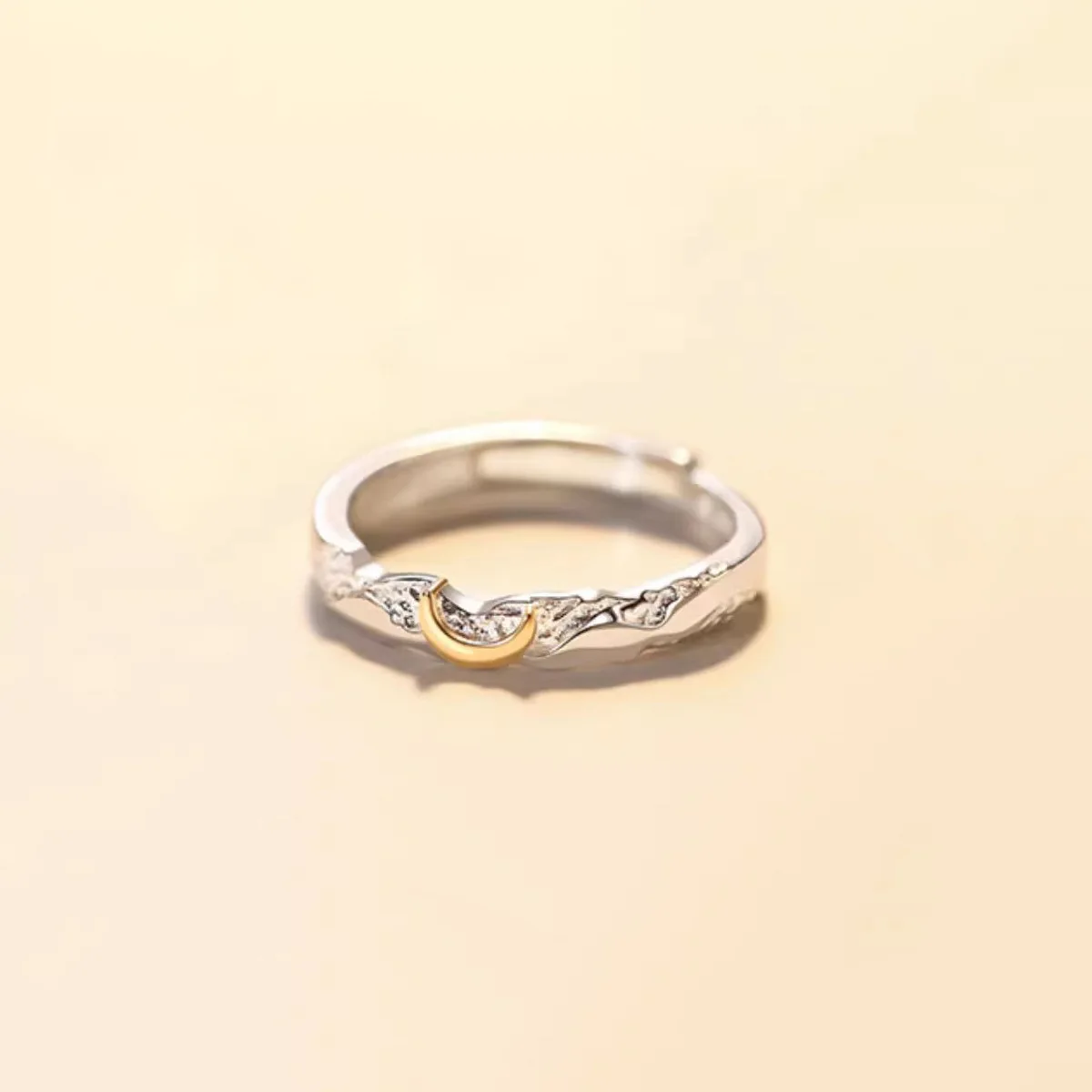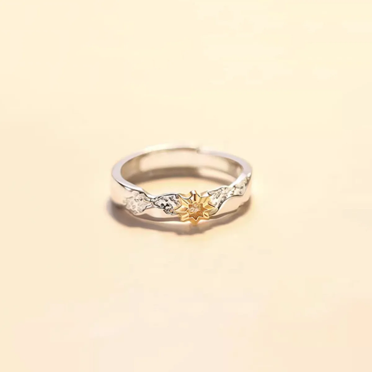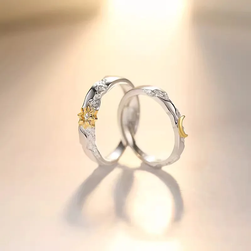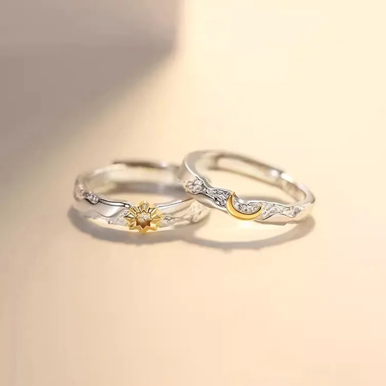Adjustable 925 Sterling Silver Rings Couple Set Minimalist Romantic Sun and Moon Ring for Valentine's Gift