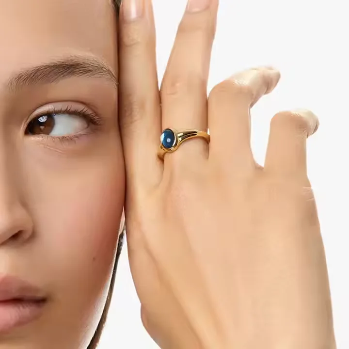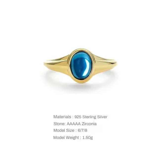 Chic Light Luxury 925 Sterling Silver Oval Gemstone Ring Fashion Women's Choice Exquisite Jewelry