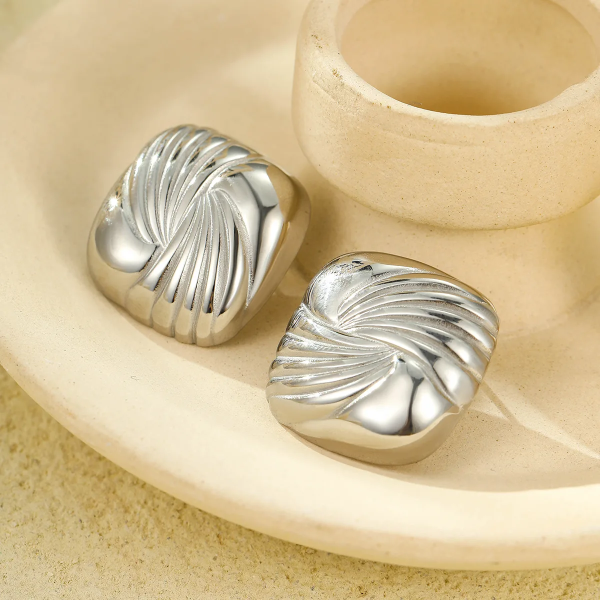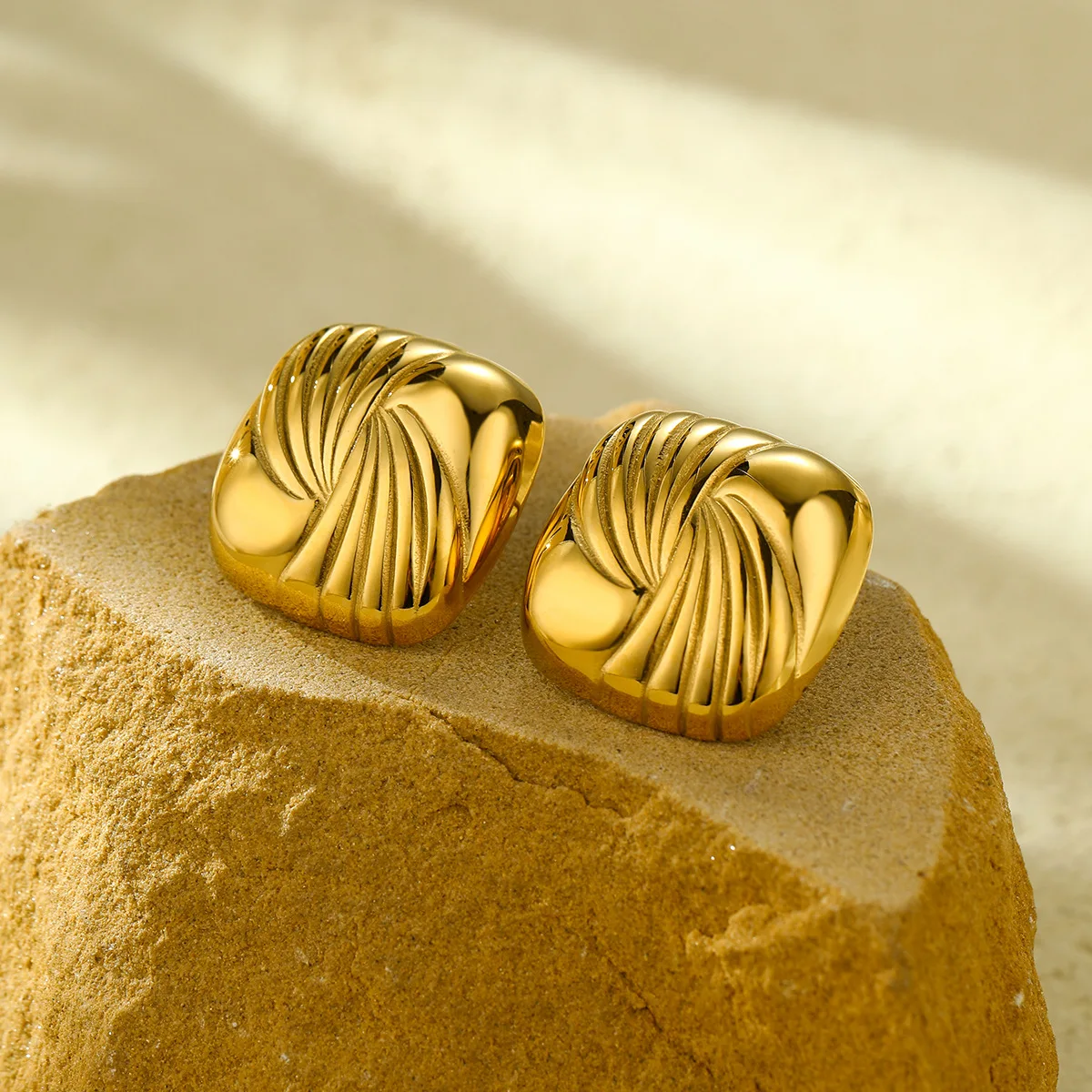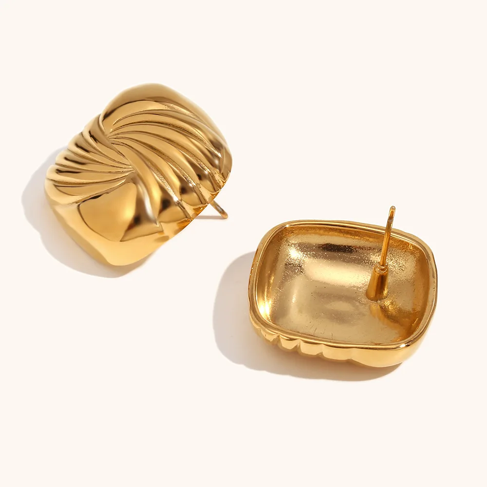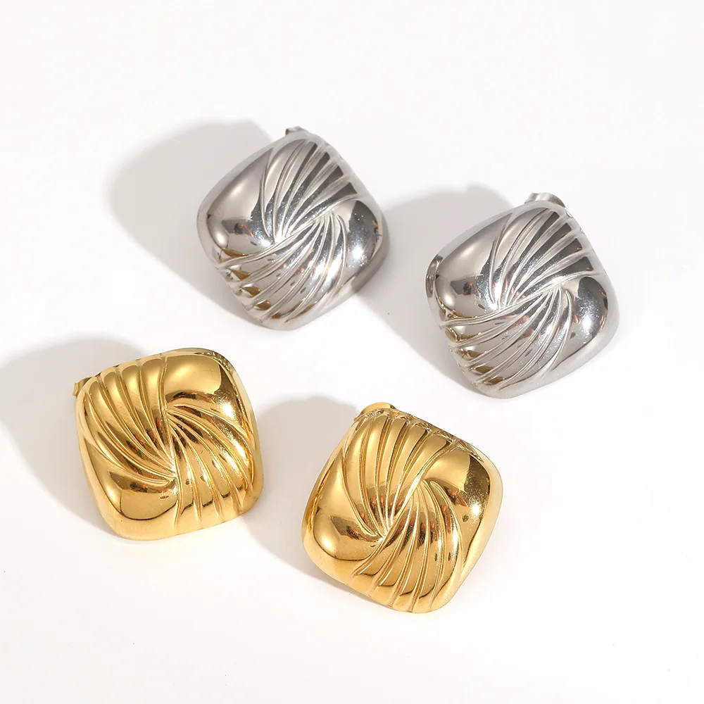 Fashion Women 18K Gold Plated Square Spiral Vintage Earrings Luxury Stainless Steel Geometric Earrings New Design Stud Earrings
