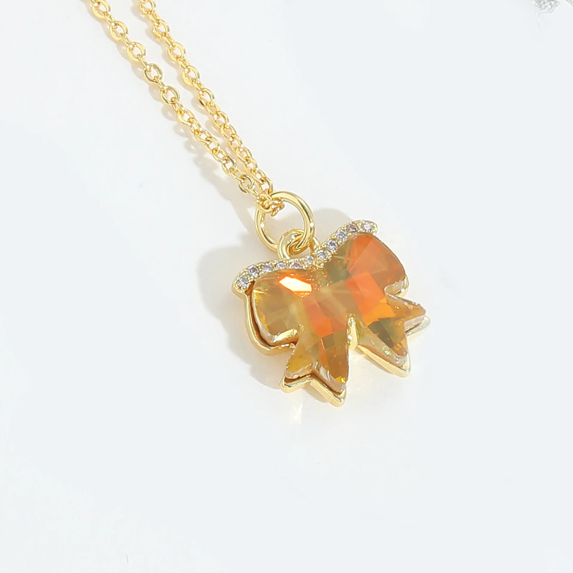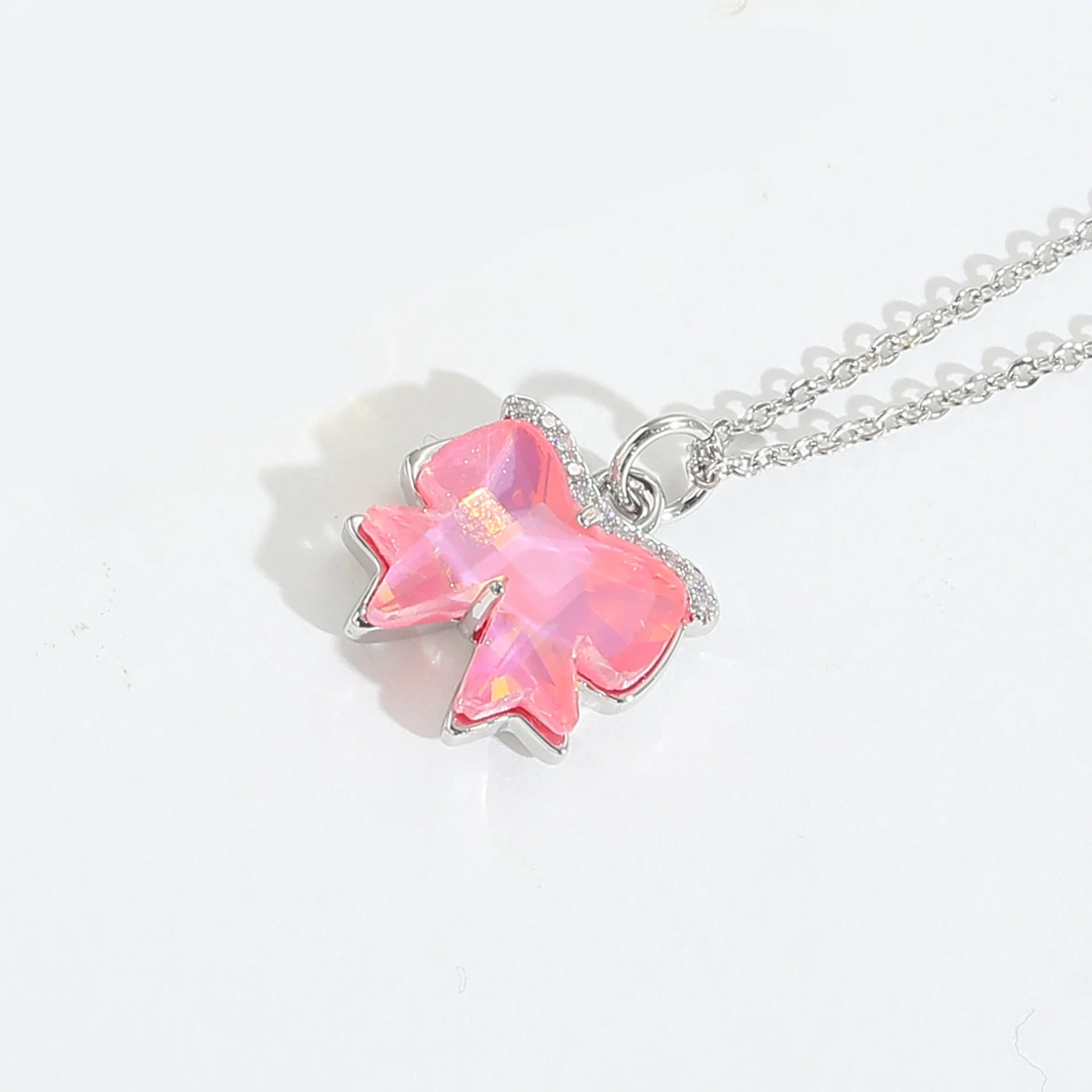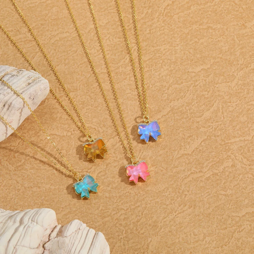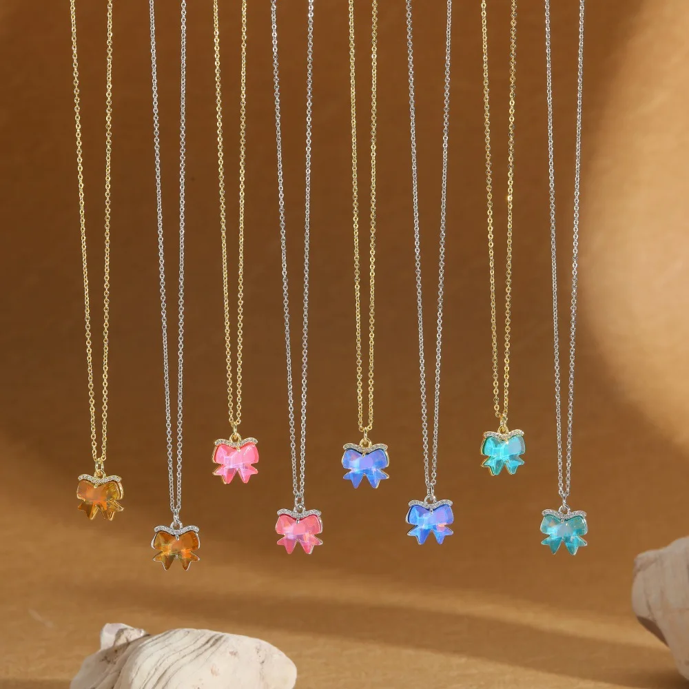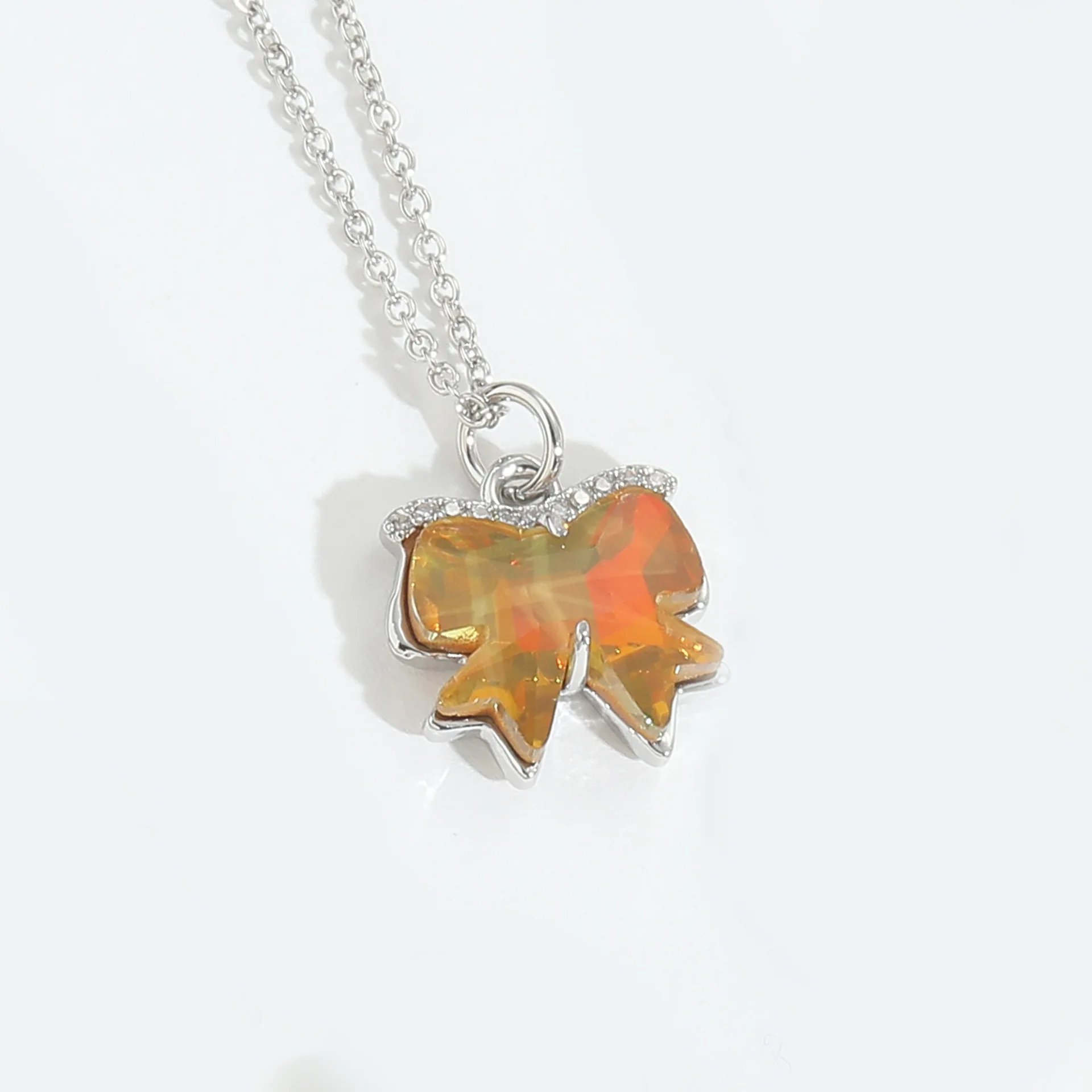 Vintageway Women's Bohemian Jewelry Rainbow Gradient Butterfly Pendant Necklace with Zircon Stones and Beaded Bracelet Chain