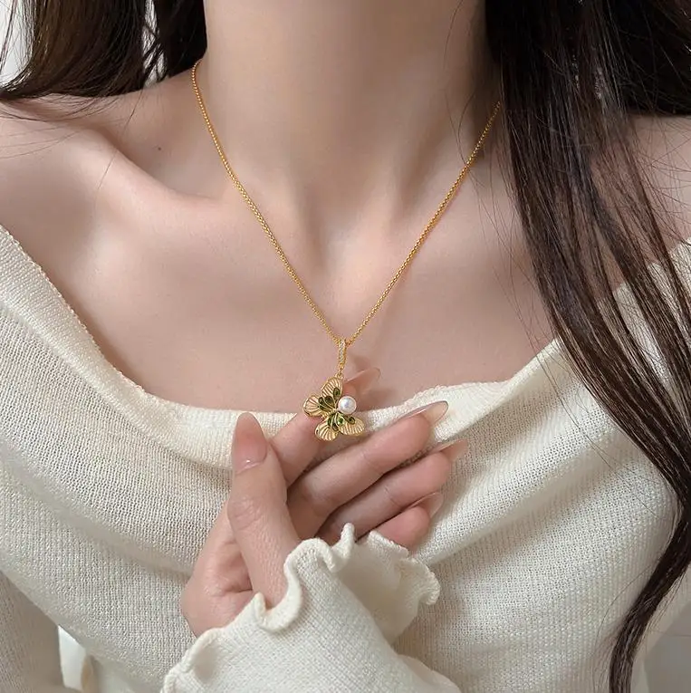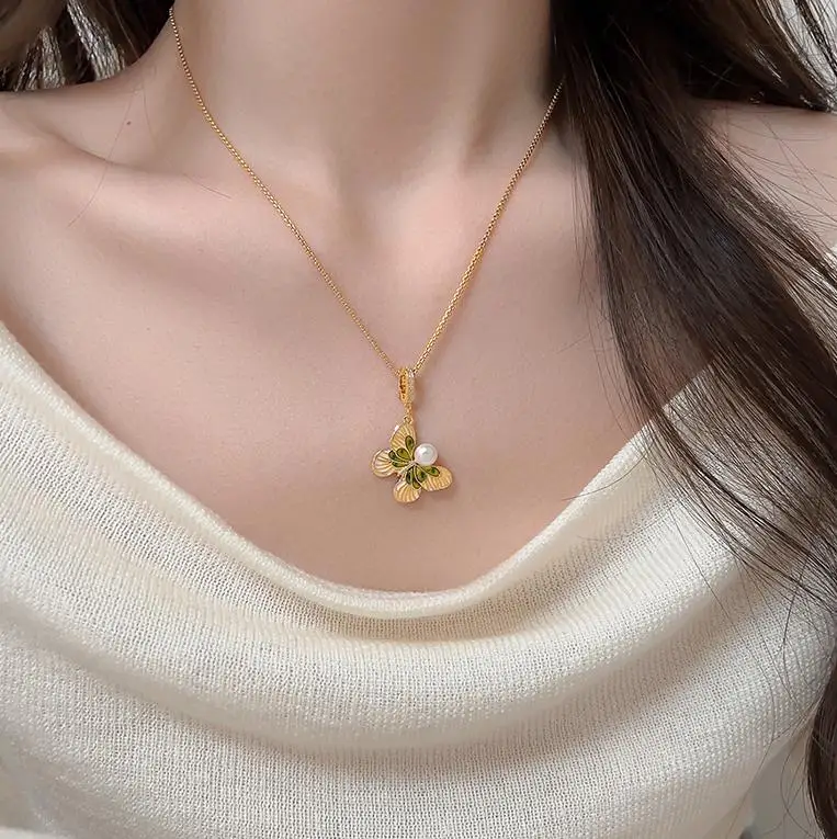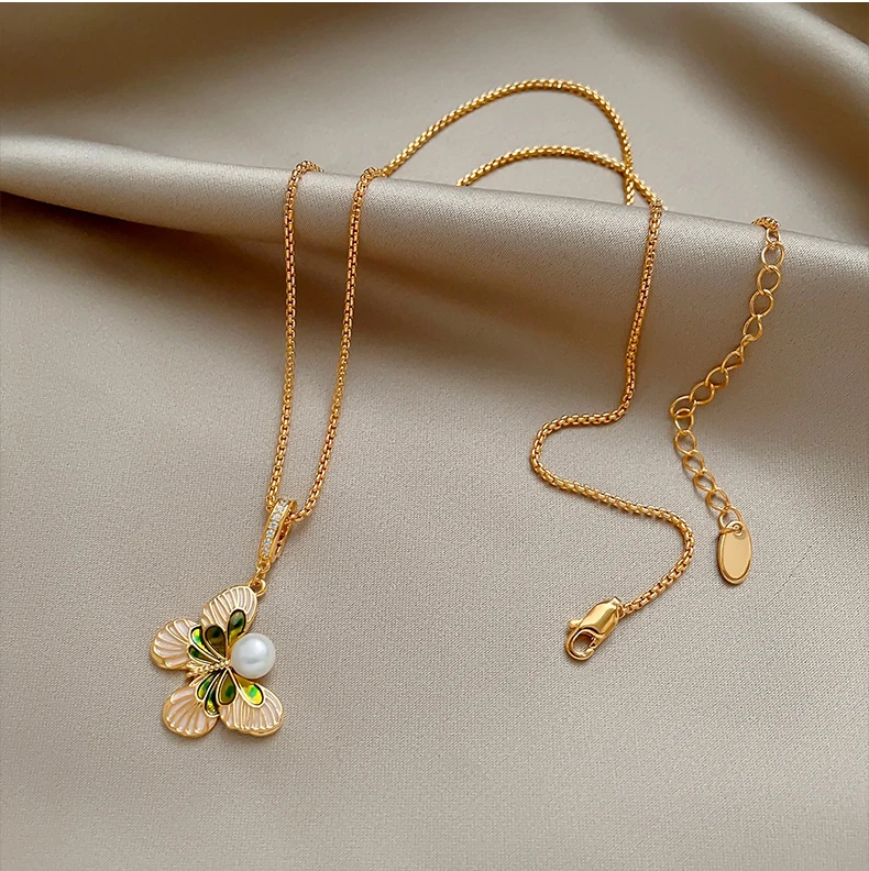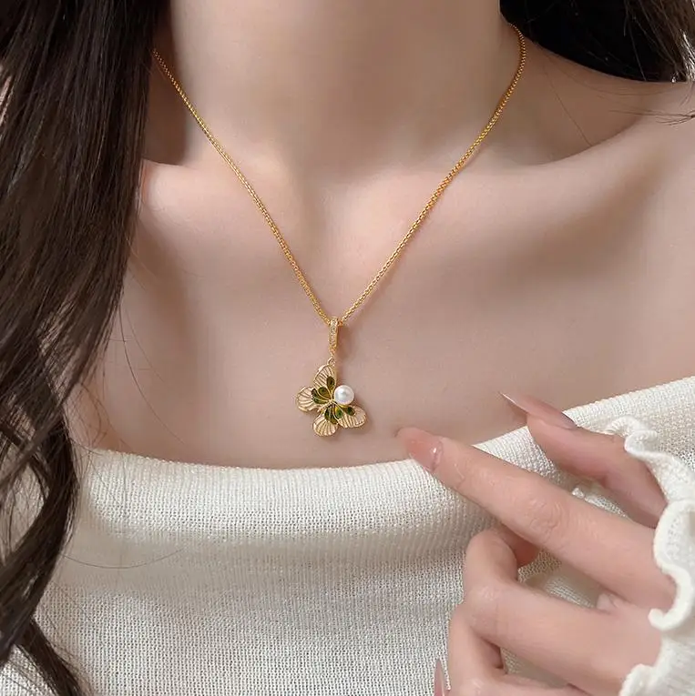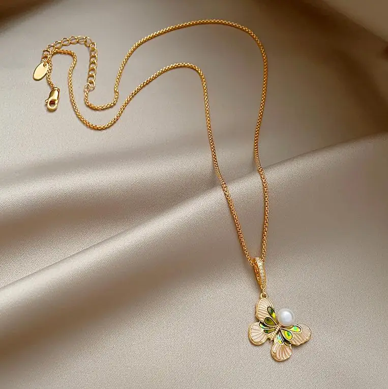 Super Dynamic Enamel Pearl Green Butterfly Necklace Elegant Choker Necklace for Women