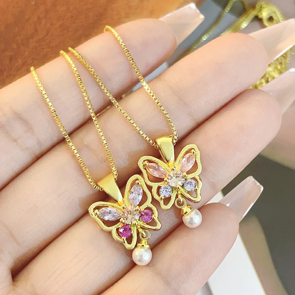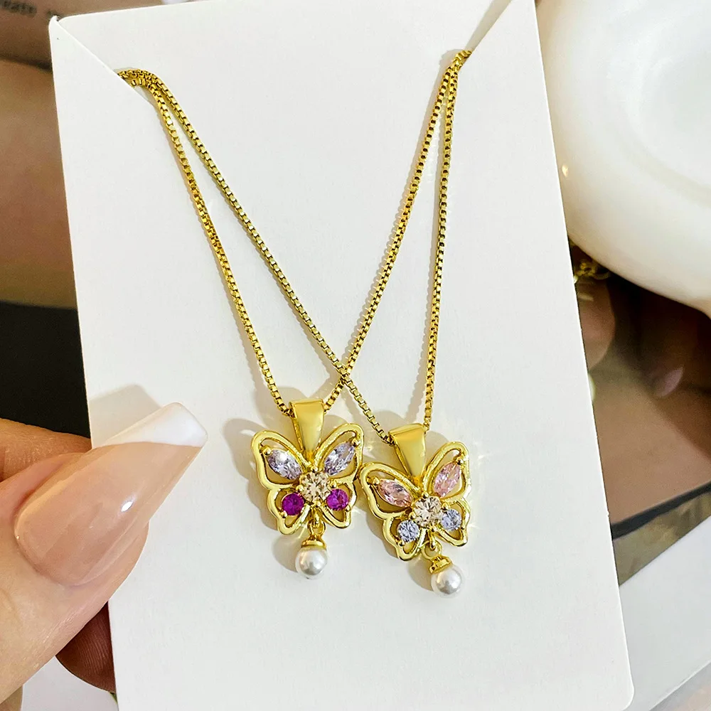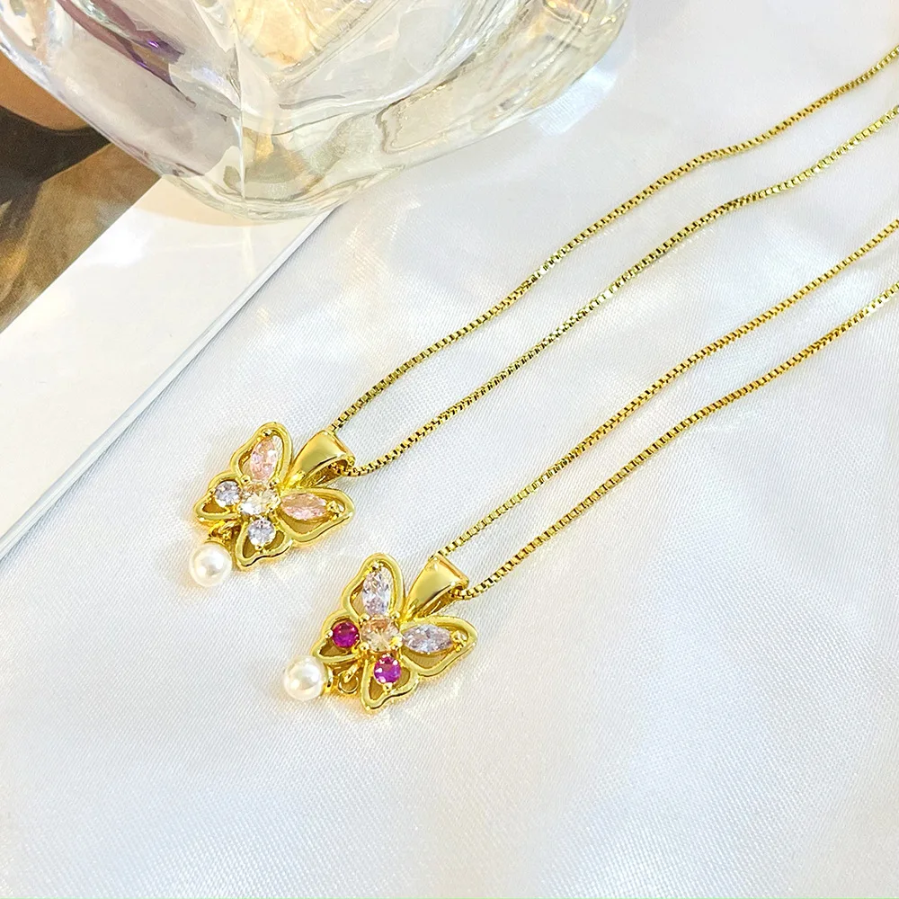Trendy Waterproof Stainless Steel Gold Plating Butterfly Charm Pendant Necklace for Women's Daily Wear