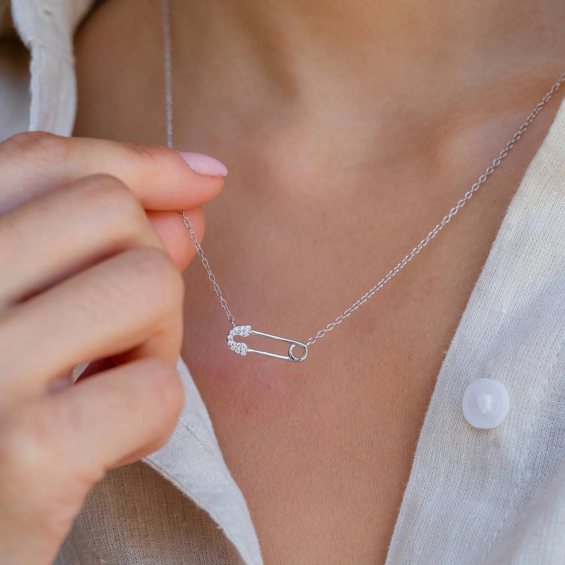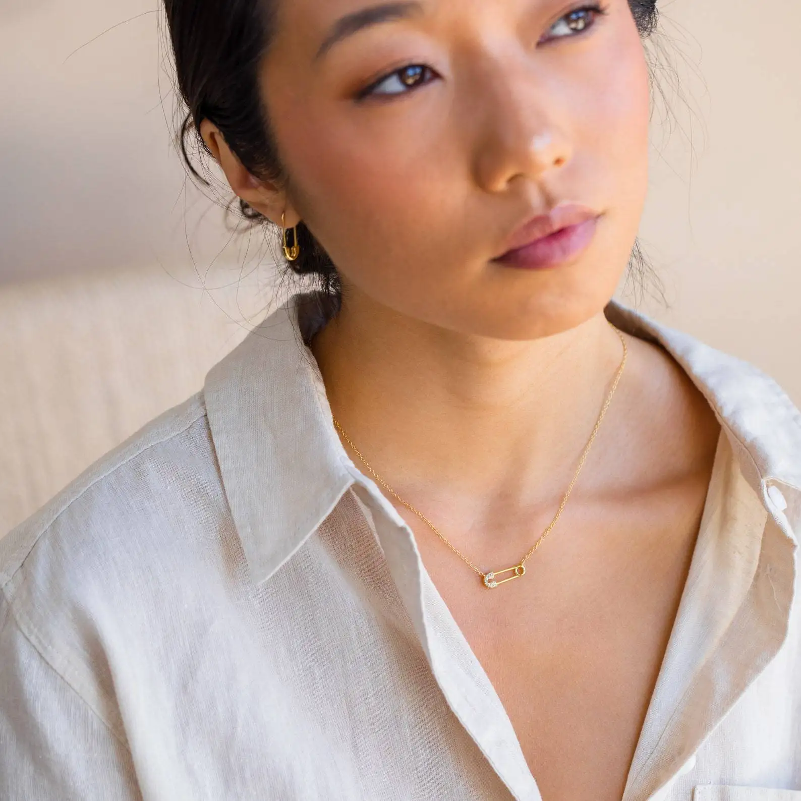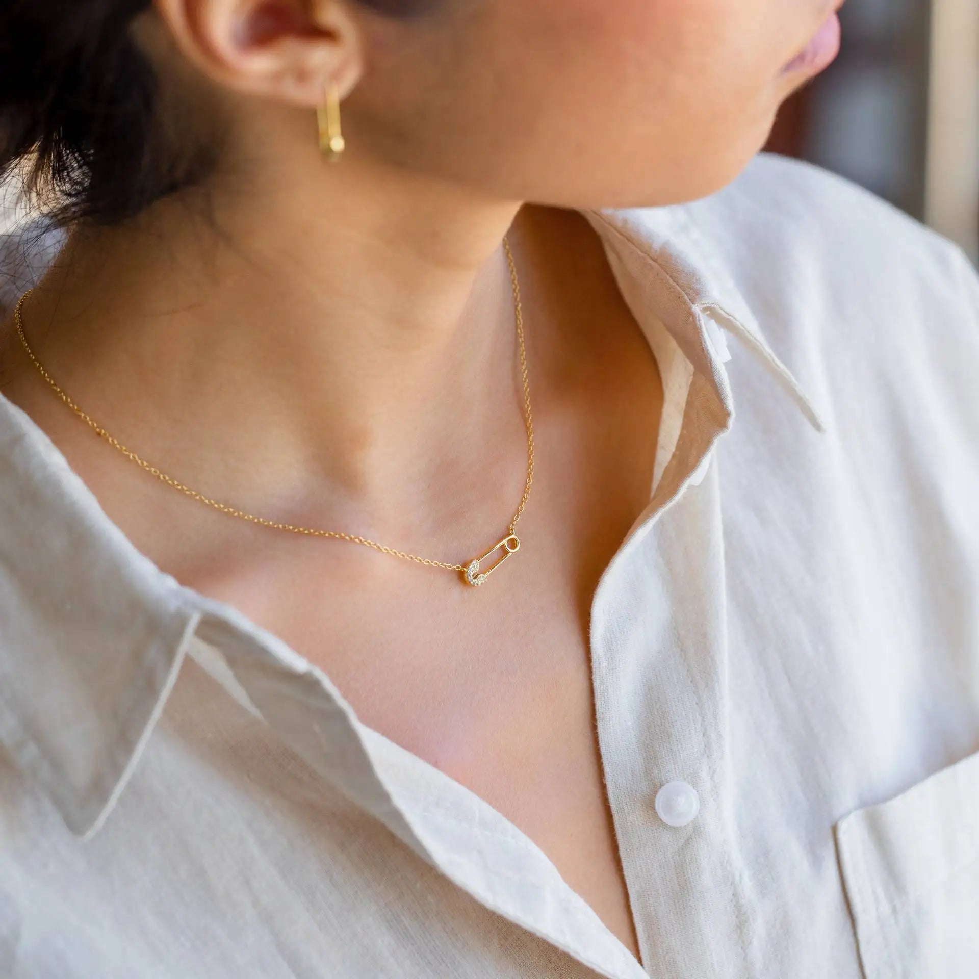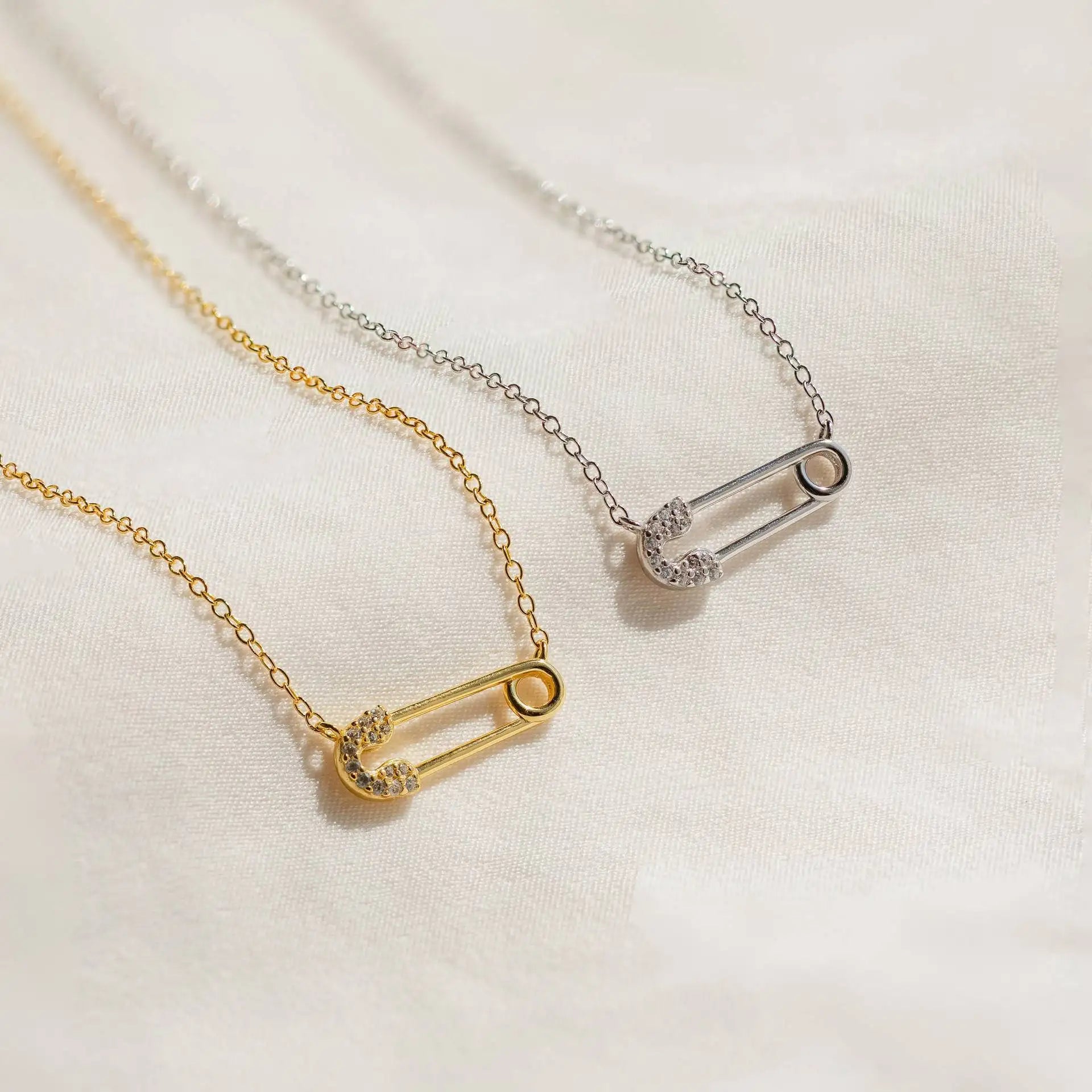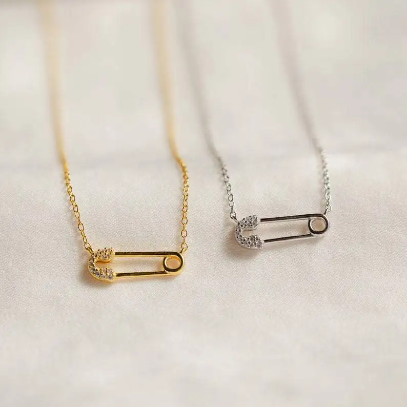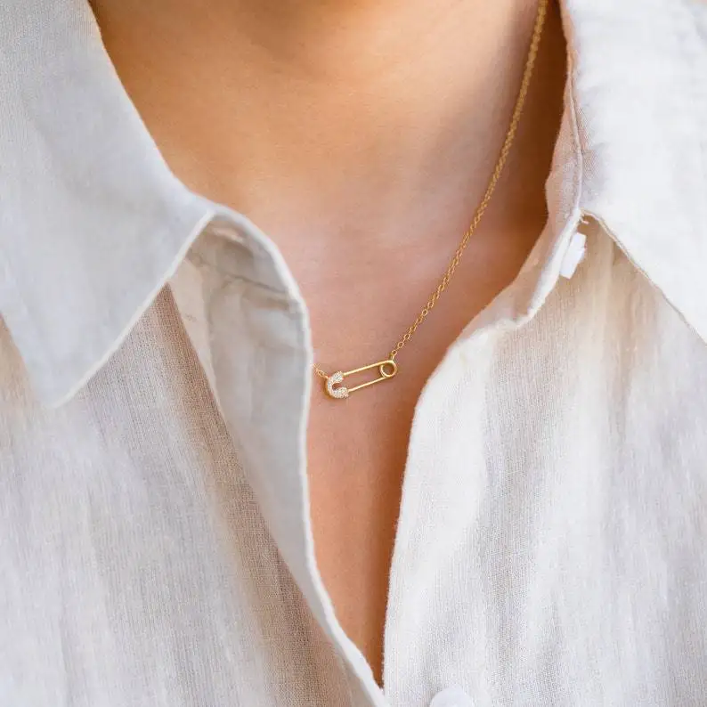 Wholesale Fashionable Stainless Steel Swivel Pin Necklace 18K Gold Plated Safety Pin Necklace for Women Gifts