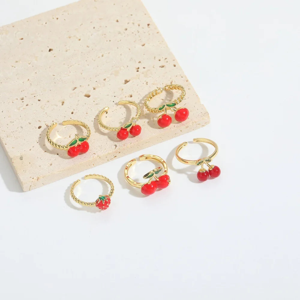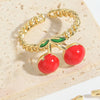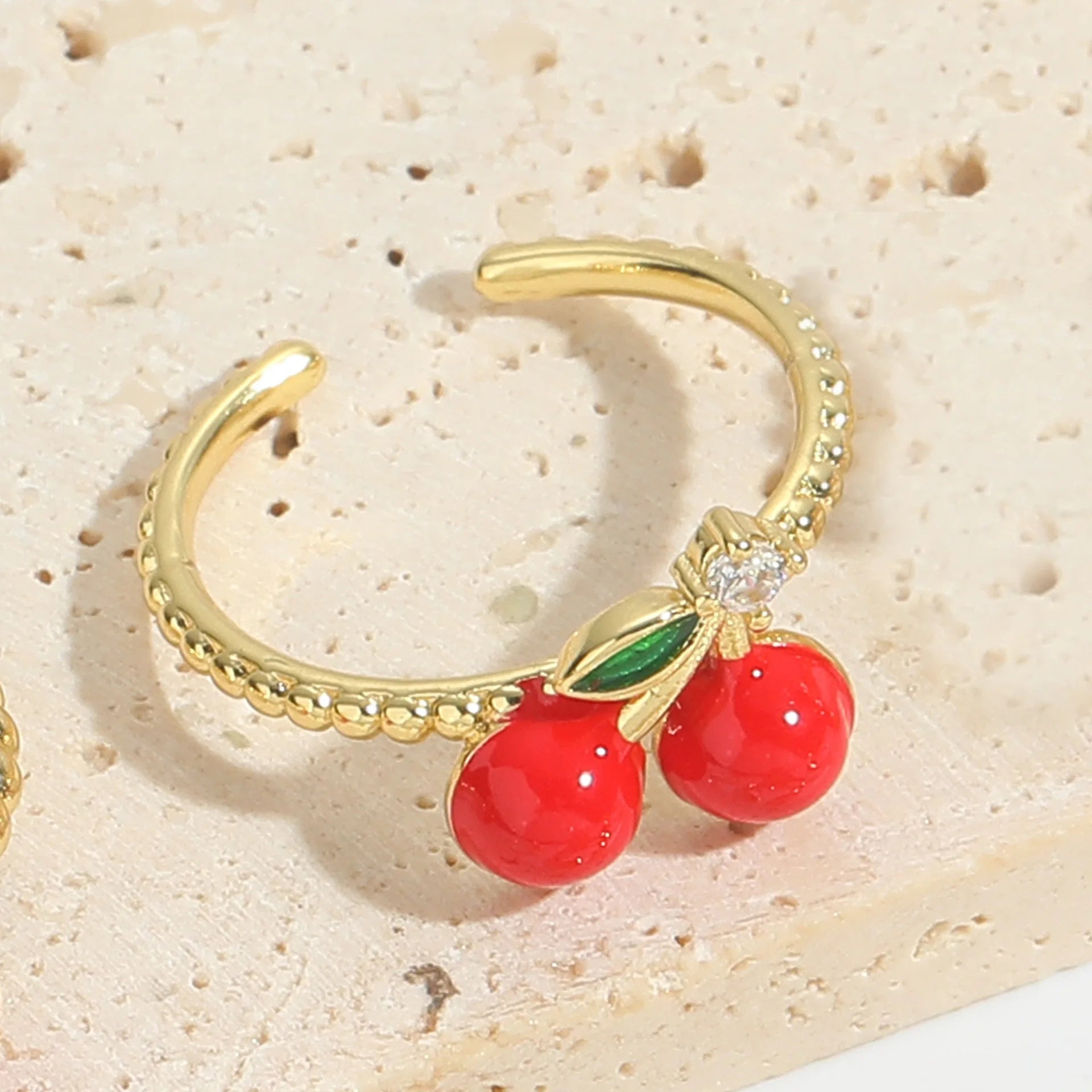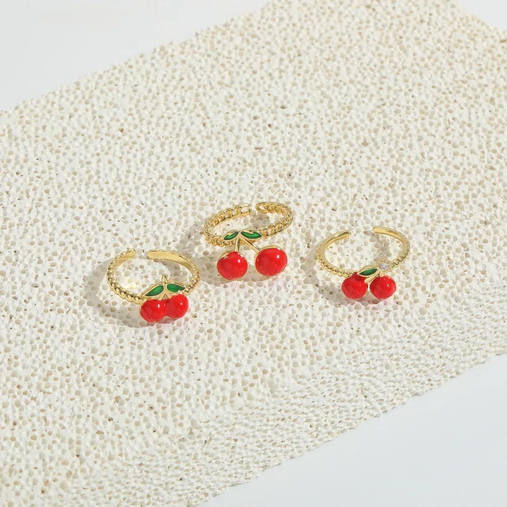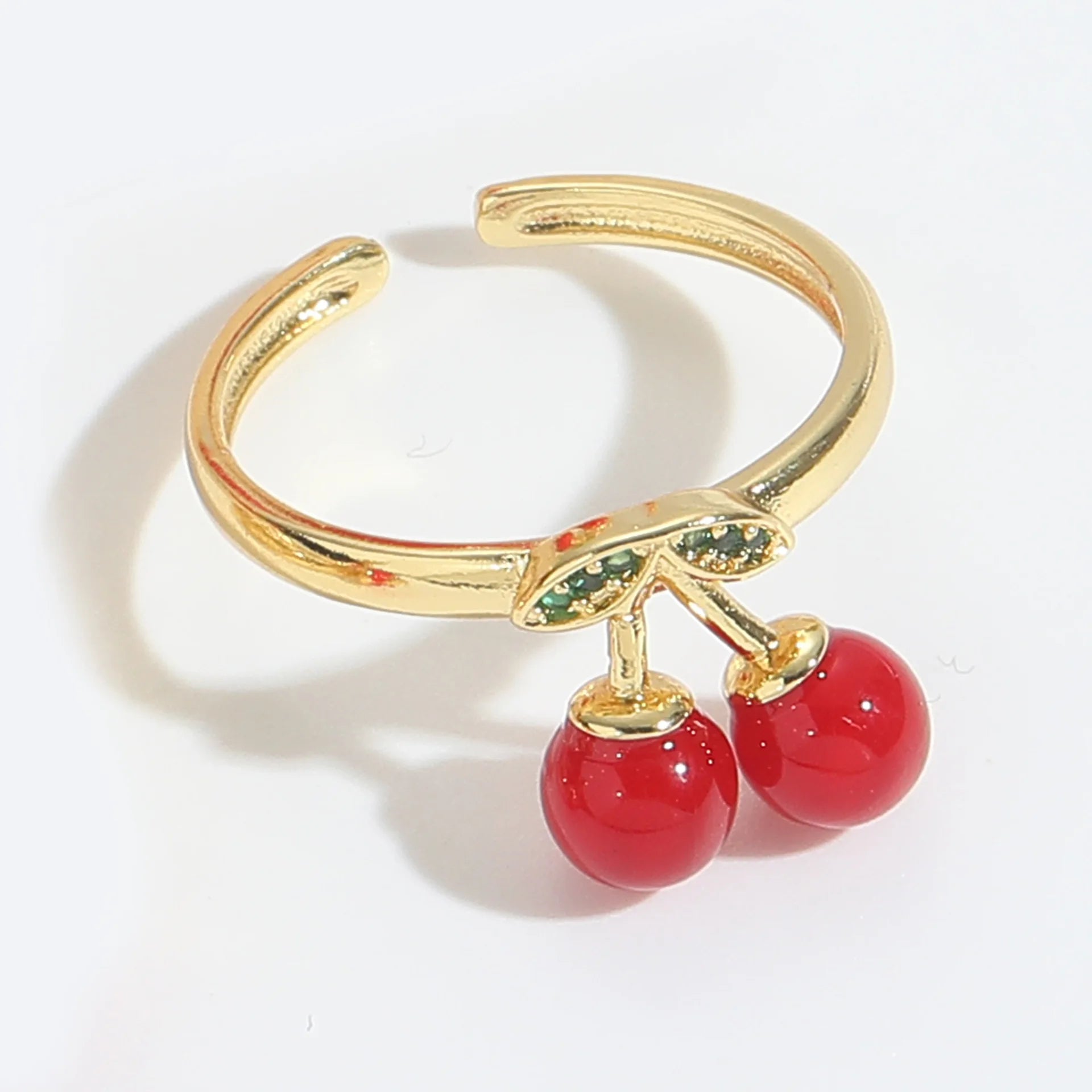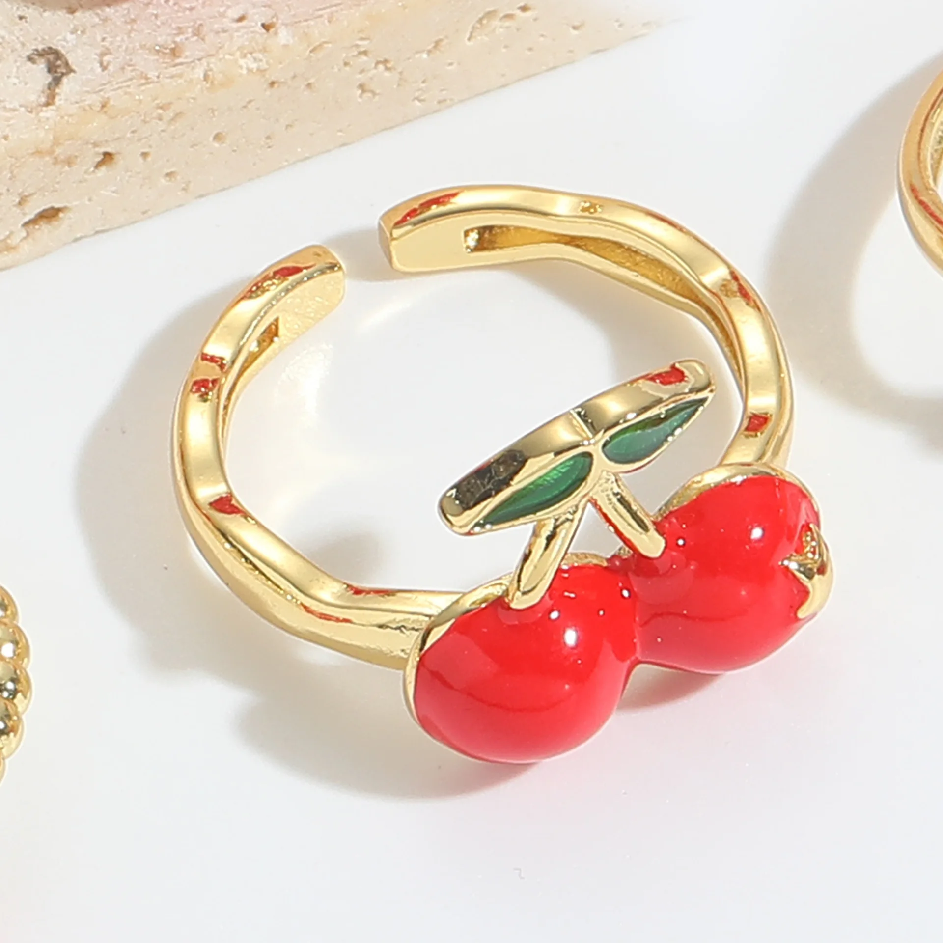 Cute Copper Cherry Open Ring Enamel Drop Adjustable Trendy Jewelry Gift for Women