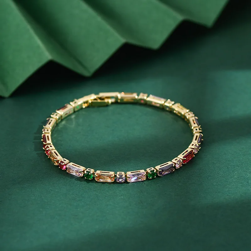 Tarnish Free Brass Mix-color CZ Bracelet Glittering Colorful Gemstone Jewelry for Women