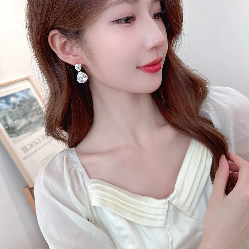Small Sterling Silver Crystal Cubic Zirconia Simulated Diamond Rhinestone Birthstone Bridal Drop Earrings for Wedding