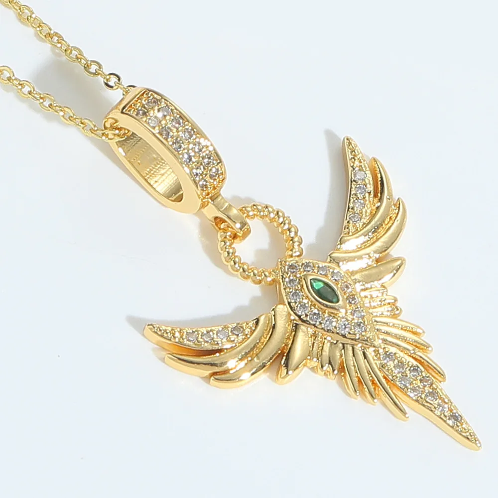 Copper Bohemian Phoenix Necklace with Zircon Pearl Pendant Boho Jewelry for Women Layered Chain Gift for Her