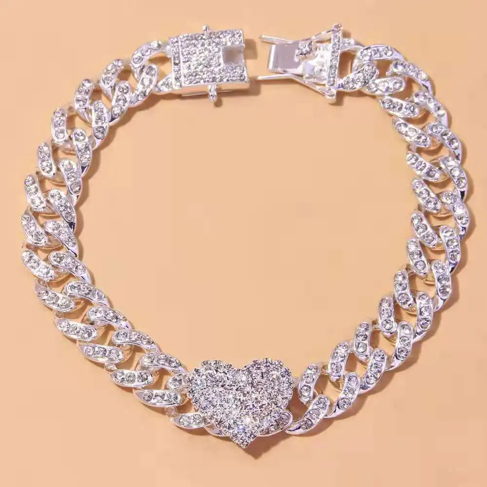2025 New Rhinestone Heart Anklet Cross-Border Sexy Cuban Chain for Beach & Nightclub Unisex Jewelry