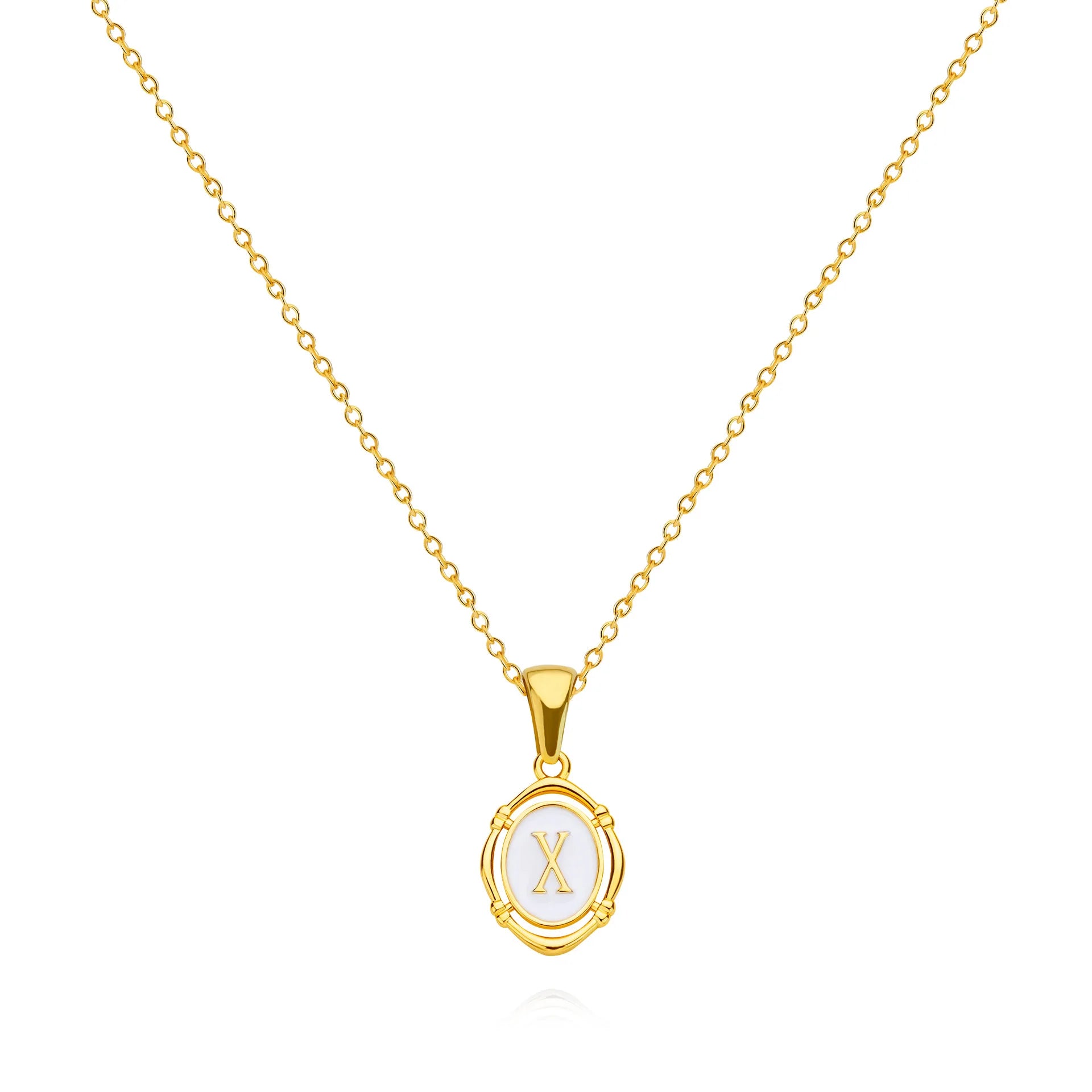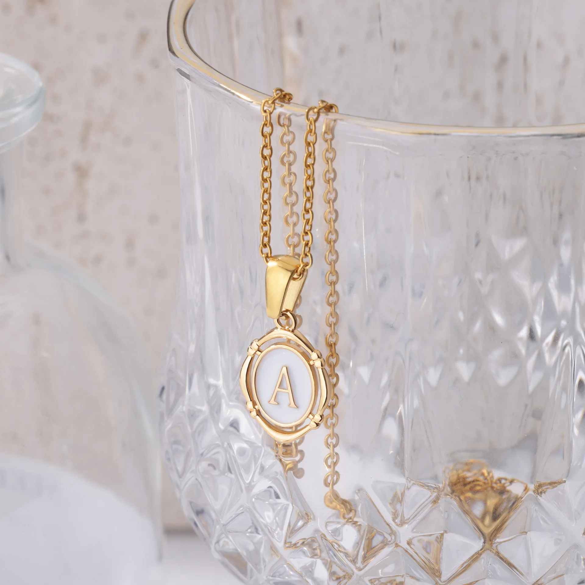 Wholesale Titanium Steel 26 Letters Oval Pendant Necklace for Men&Women Personalized Waterproof 26 Alphabet Charms Necklaces
