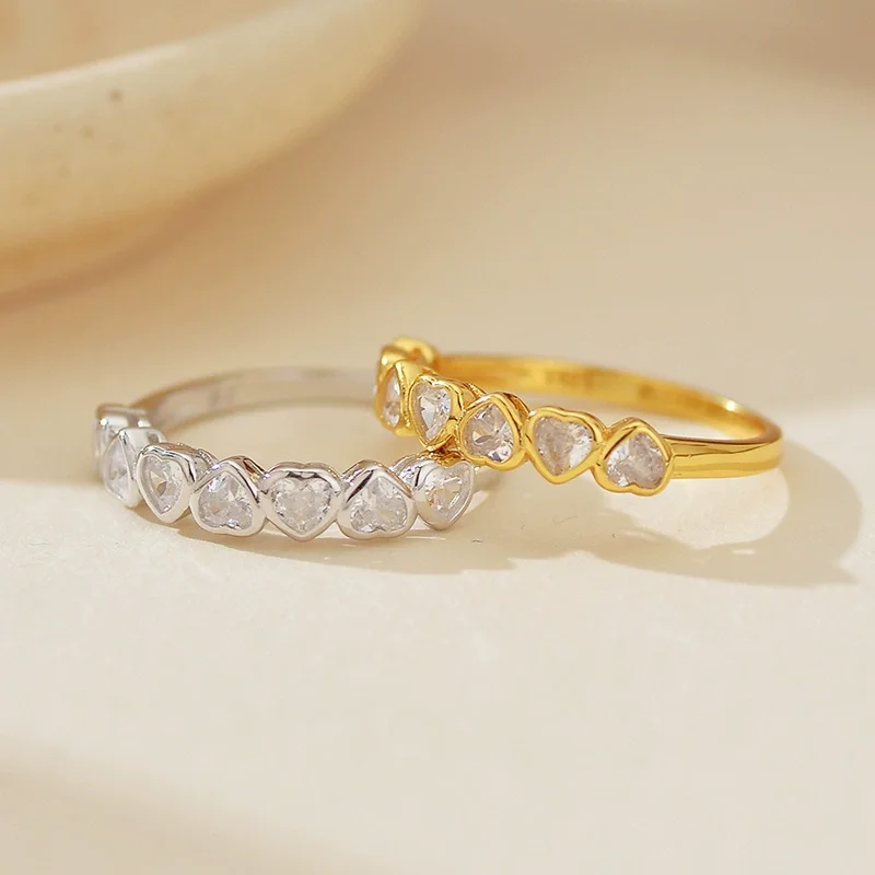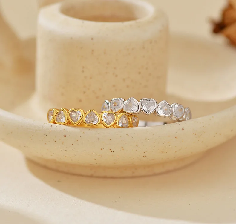 Wholesale Fashion 18K Gold Plated Cubic Zirconia Heart Ring 925 Sterling Silver Rings for Women