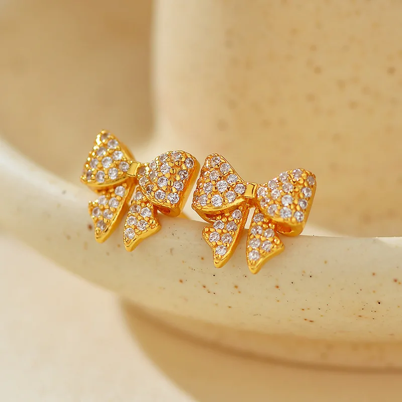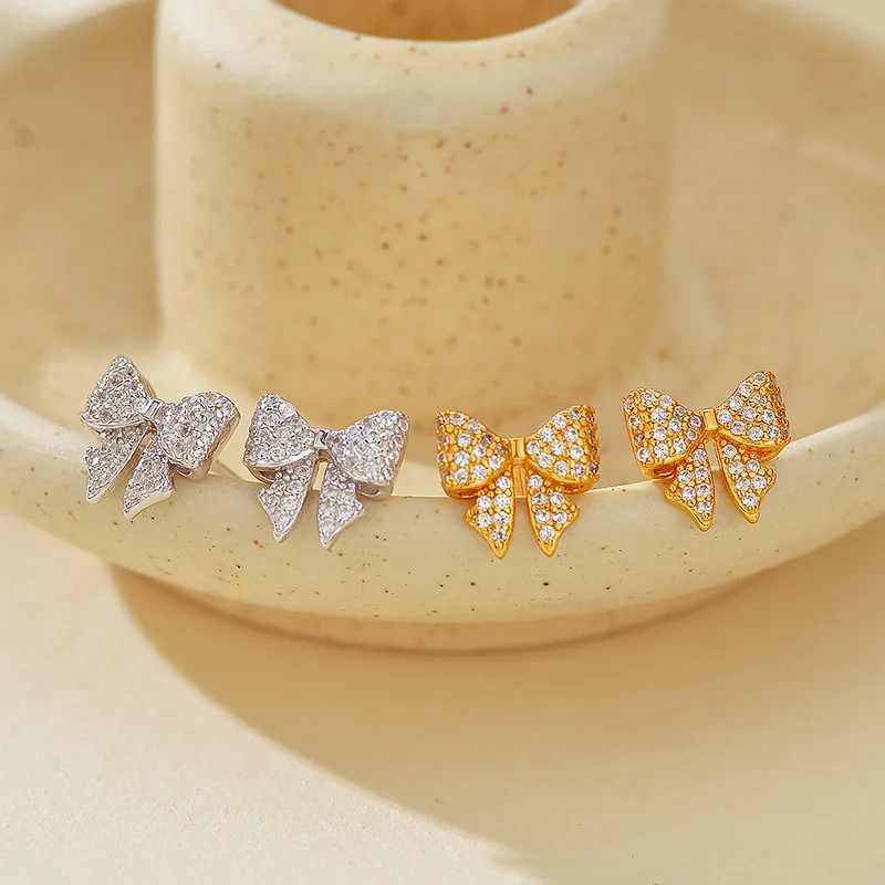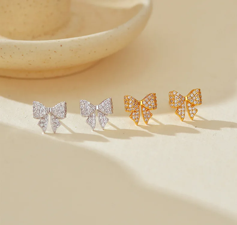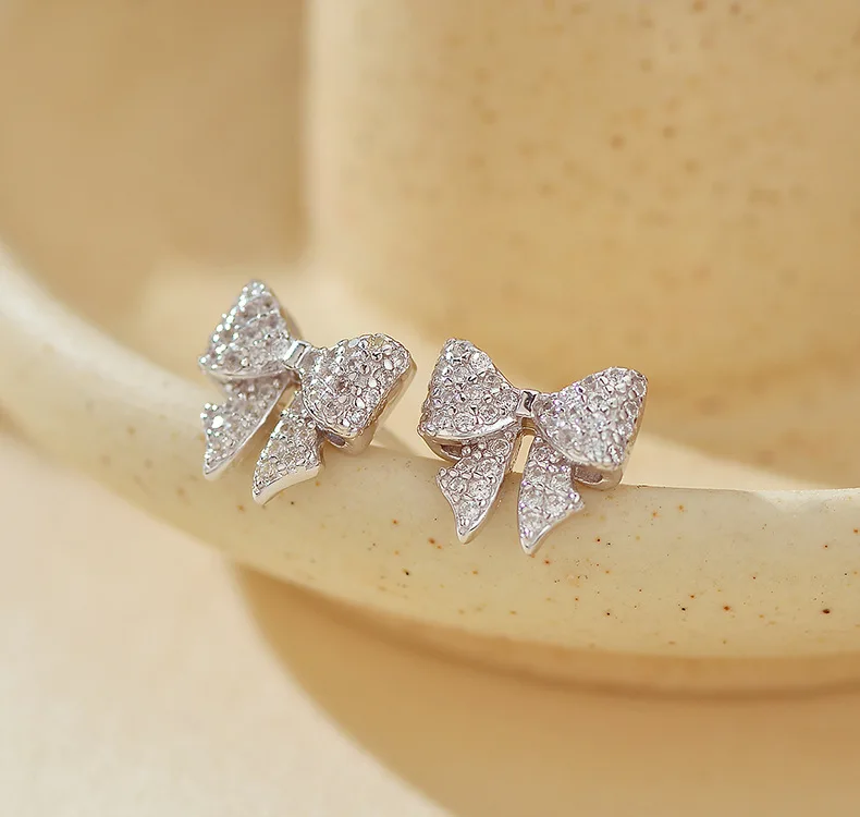 Trendy Earrings 2025 925 Sterling Silver Bow Knot Zircon Earrings Wholesale Bulk Fashion Stud Earrings for Women