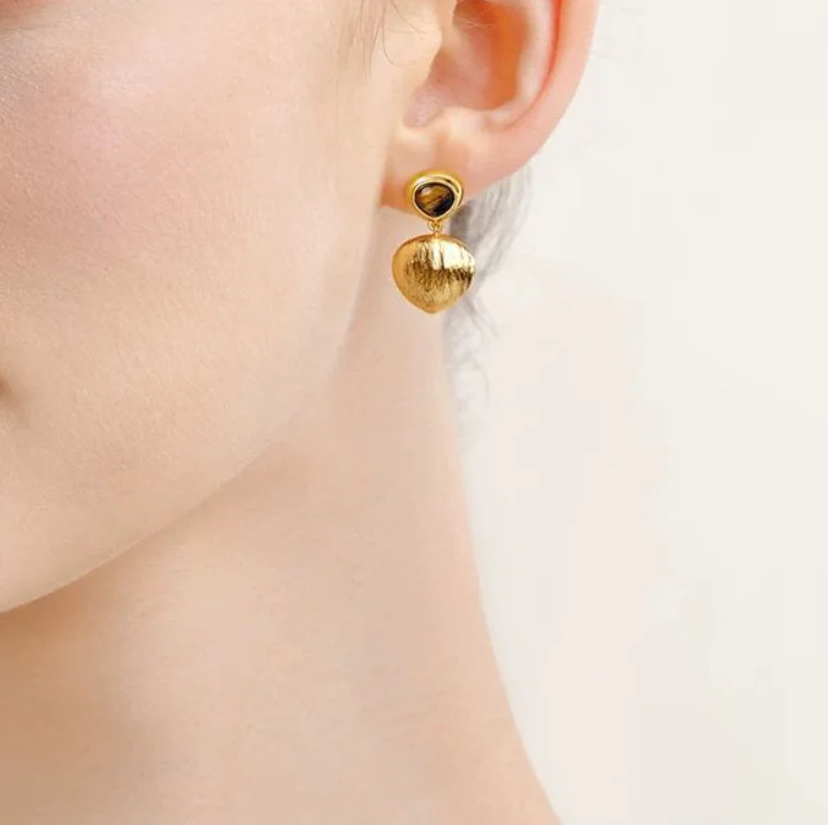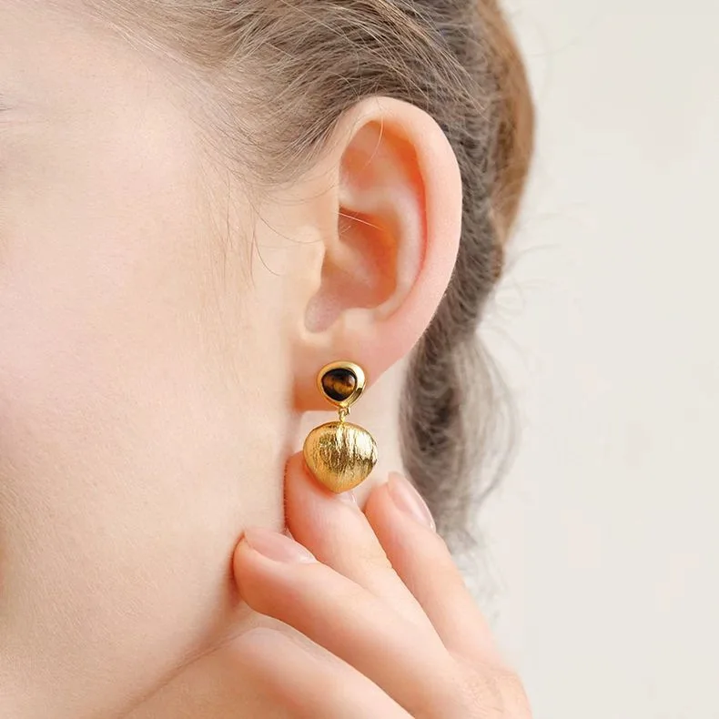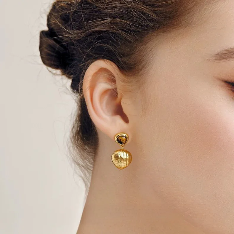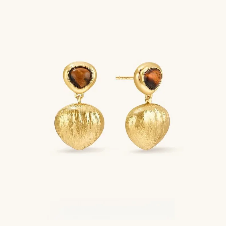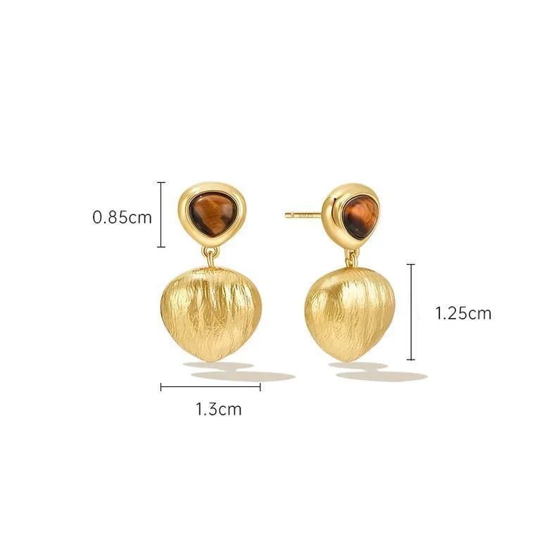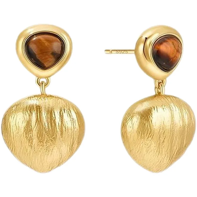 Stylish Tiger Eye Temperament Heart Shape Dangle Earrings Gold Plated Specifically Crafted for Elegant Women's Jewelry