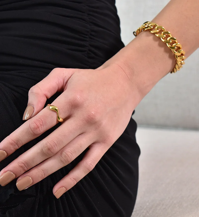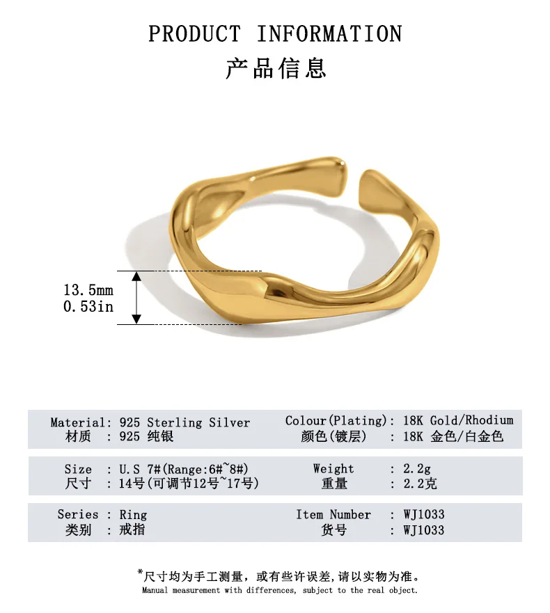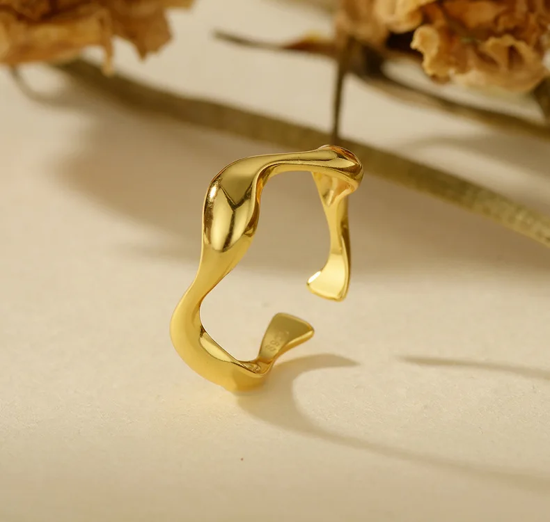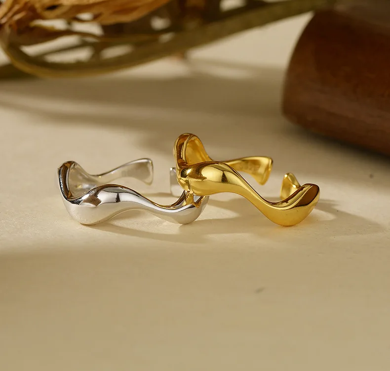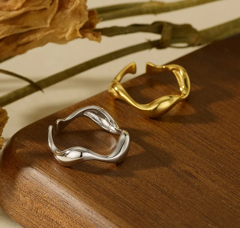 Wholesale Fashion 925 Silver Wave Open Ring, Gold/Silver Dual-Tone Modern Jewelry for Women Wedding/Daily Wear