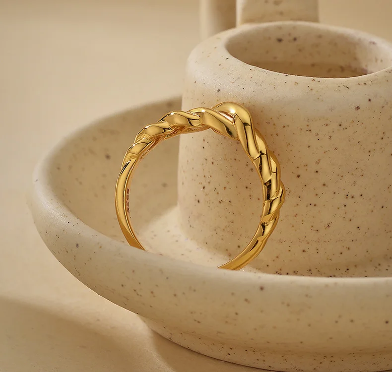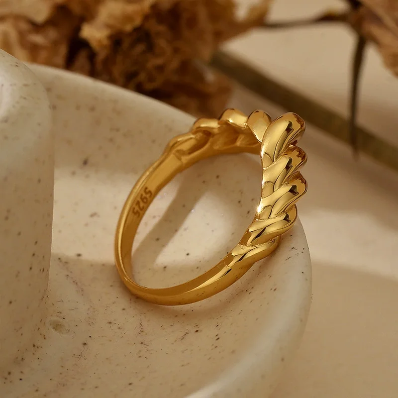 Vintage 925 Sterling Silver Croissant Ring for Women Waterproof 18K Gold Plated Stackable Ring Jewelry for Her Gift