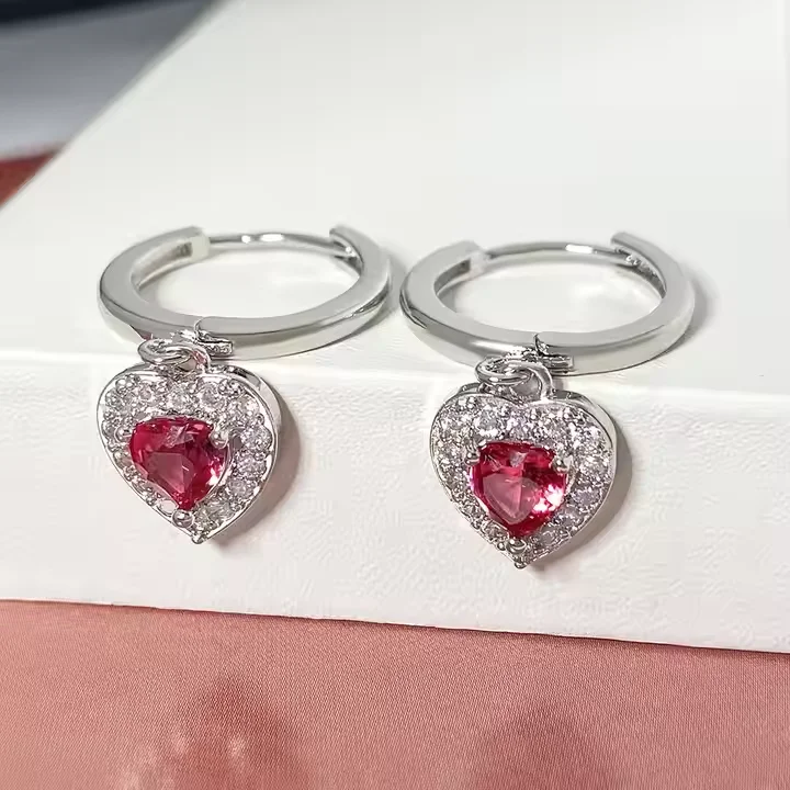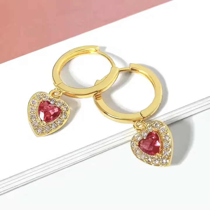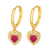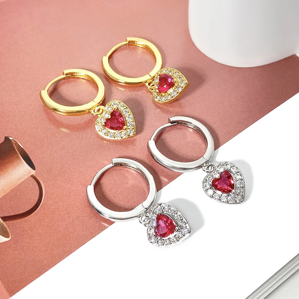 Valentine's Day Jewelry Set Gold Plating Heart Hoop Earrings Fashion Red Zircon Heart Hoop Earrings for Her Gift