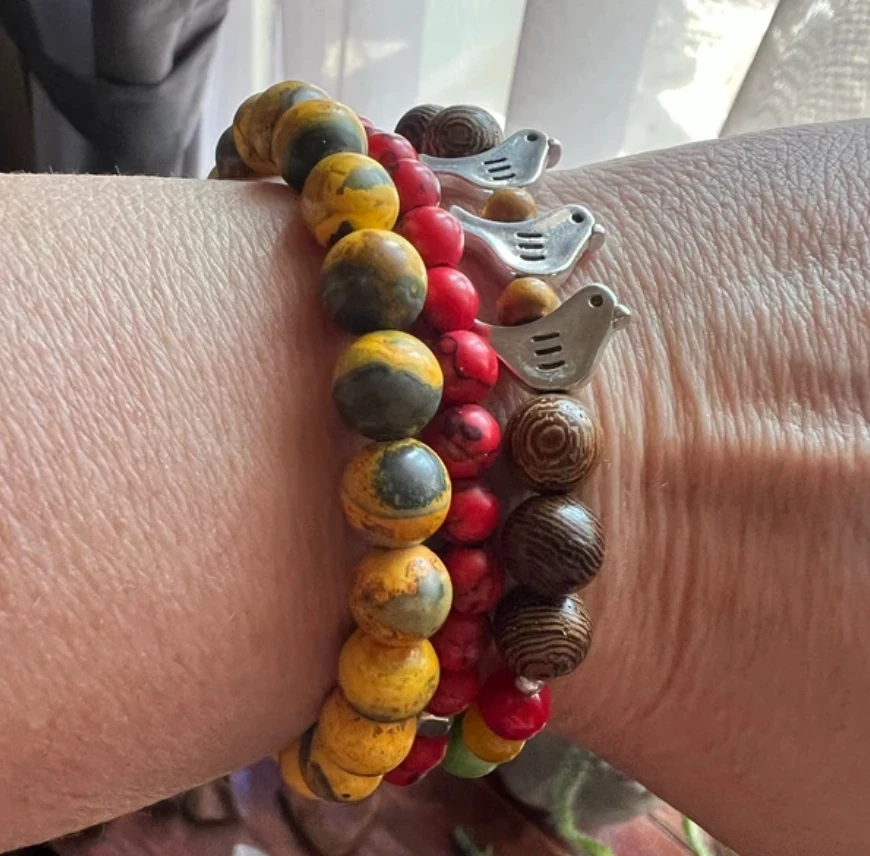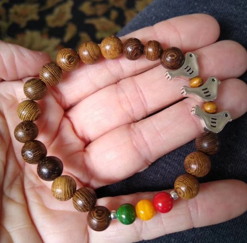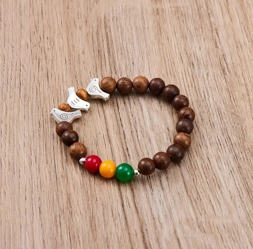 Hot Seller Handmade Wooden Tri Colored Stone Three Little Birds Beaded Bracelet love & Peace Lucky Charm Bracelet for Women
