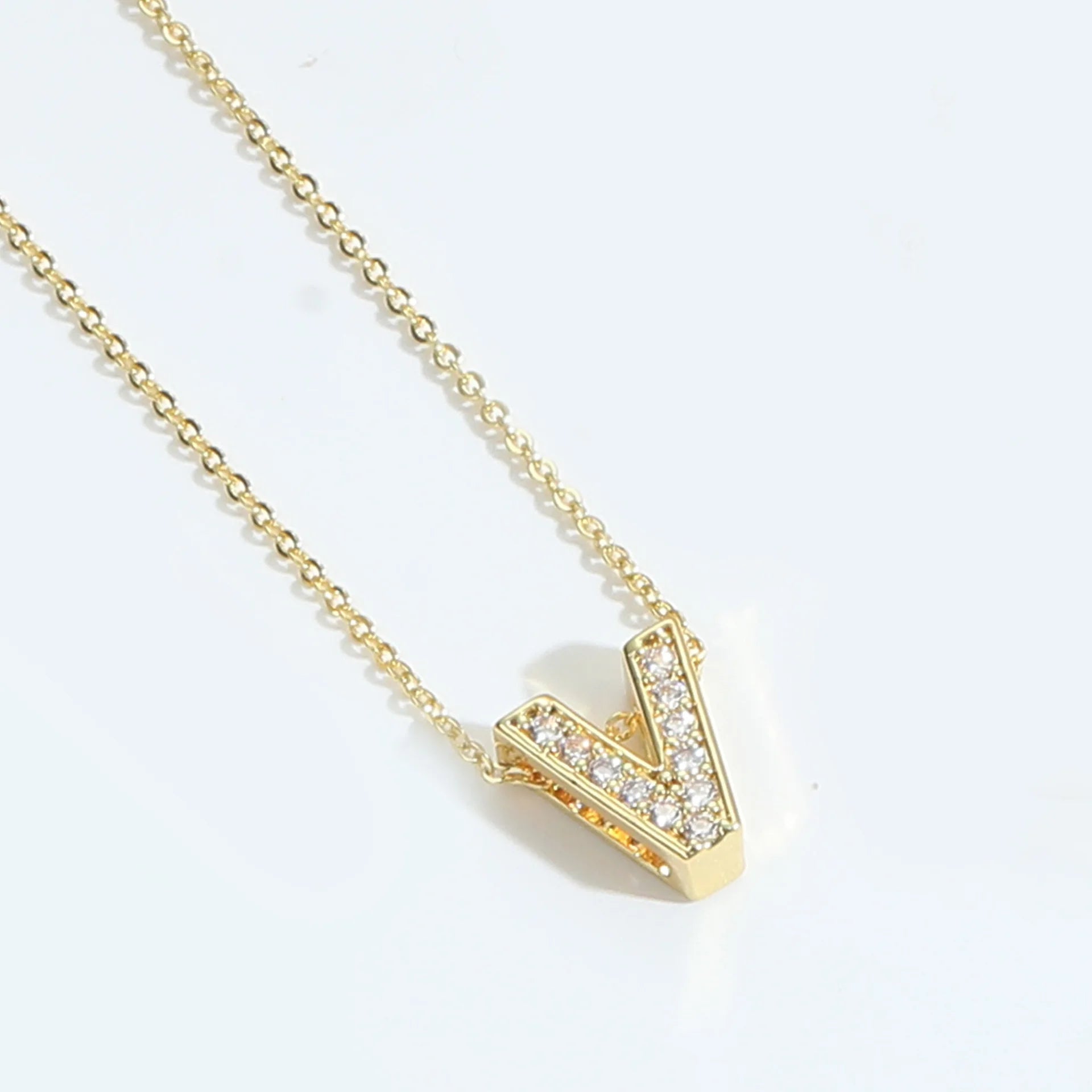 Copper Micro Embedded Zircon Collarbone Chain Necklace Minimalist Gold Tone Jewelry Choker for Office & Party