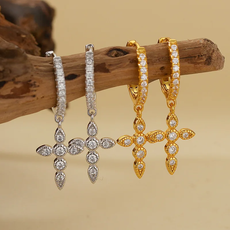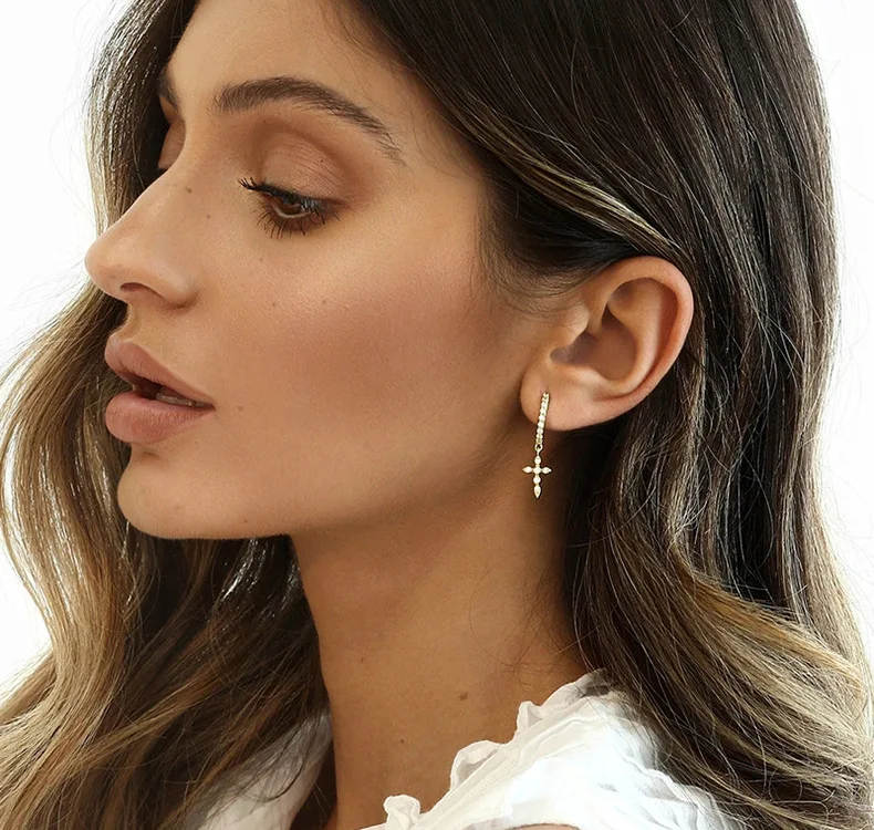Trendy Earrings 2025 925 Sterling Silver Cross Zircon Hoop Earrings Wholesale Bulk Fashion Stud Earrings for Women Gift