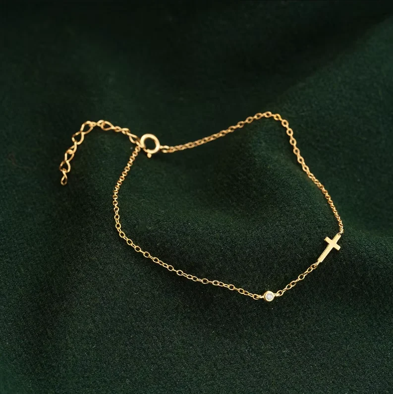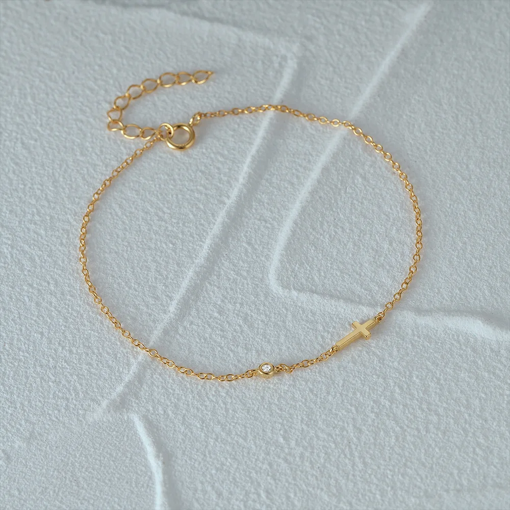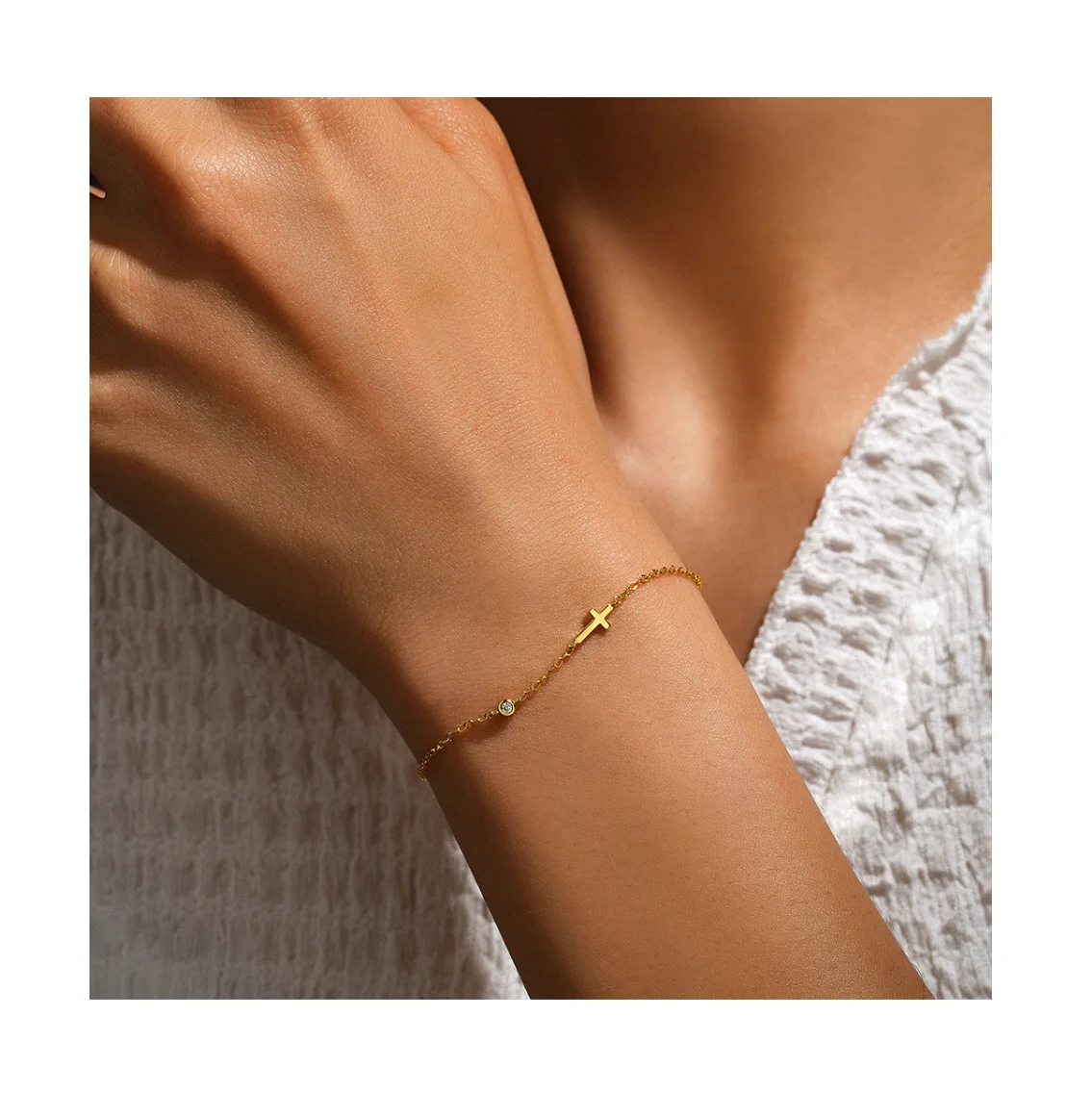 Hot Selling 18K Gold Plated Cross for Bracelet Dainty Waterproof Zircon Charm for Women Stainless Steel Classic for