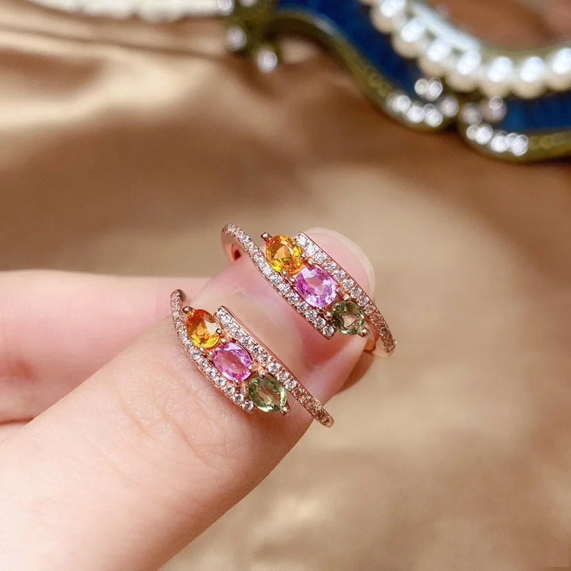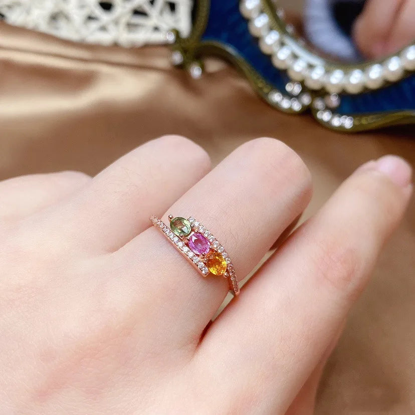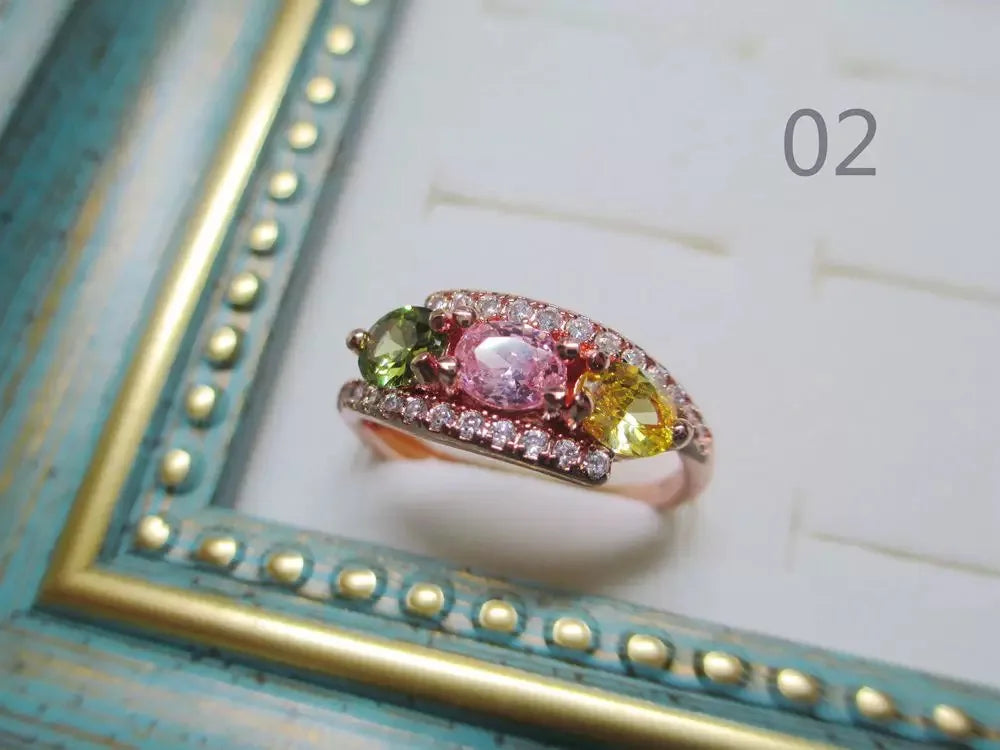 New Exquisite Rose Gold Plated Multi-colored Zircon Ring Stackable Open Ring for Women Gift
