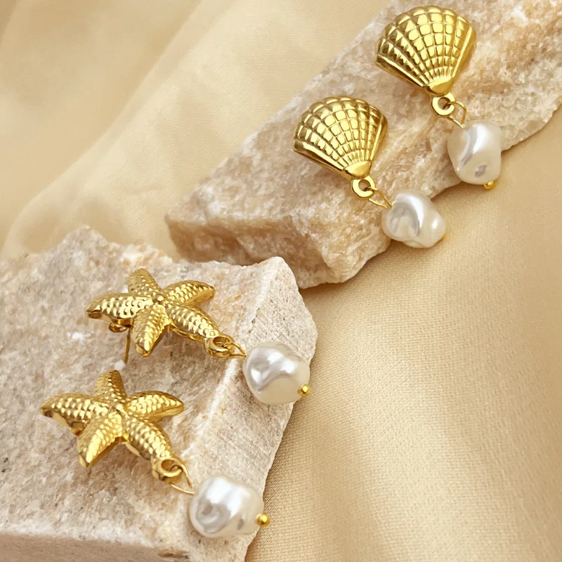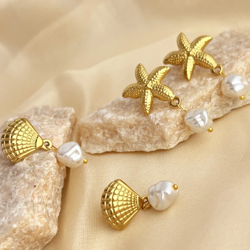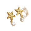 Golden Pearl Sea Star Earrings Handmade Luxury Coastal Jewelry for Women Trendy Pearl Accent Accessories