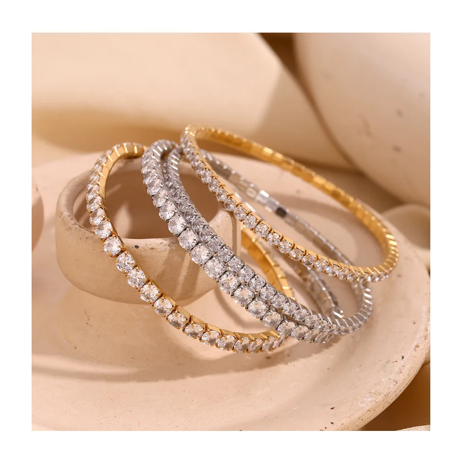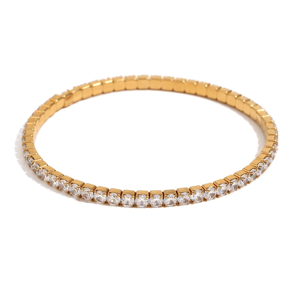 New Fashion 18K Gold Plated Stainless Steel Tennis Zirconia Bracelet Luxury Elastic Bangle for Women